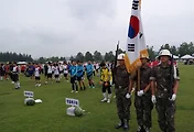 화북면 오동리 주민들의 기념사진, 서재영 이장(맨 우측)과 양국환 화북면장(우측 2번째)