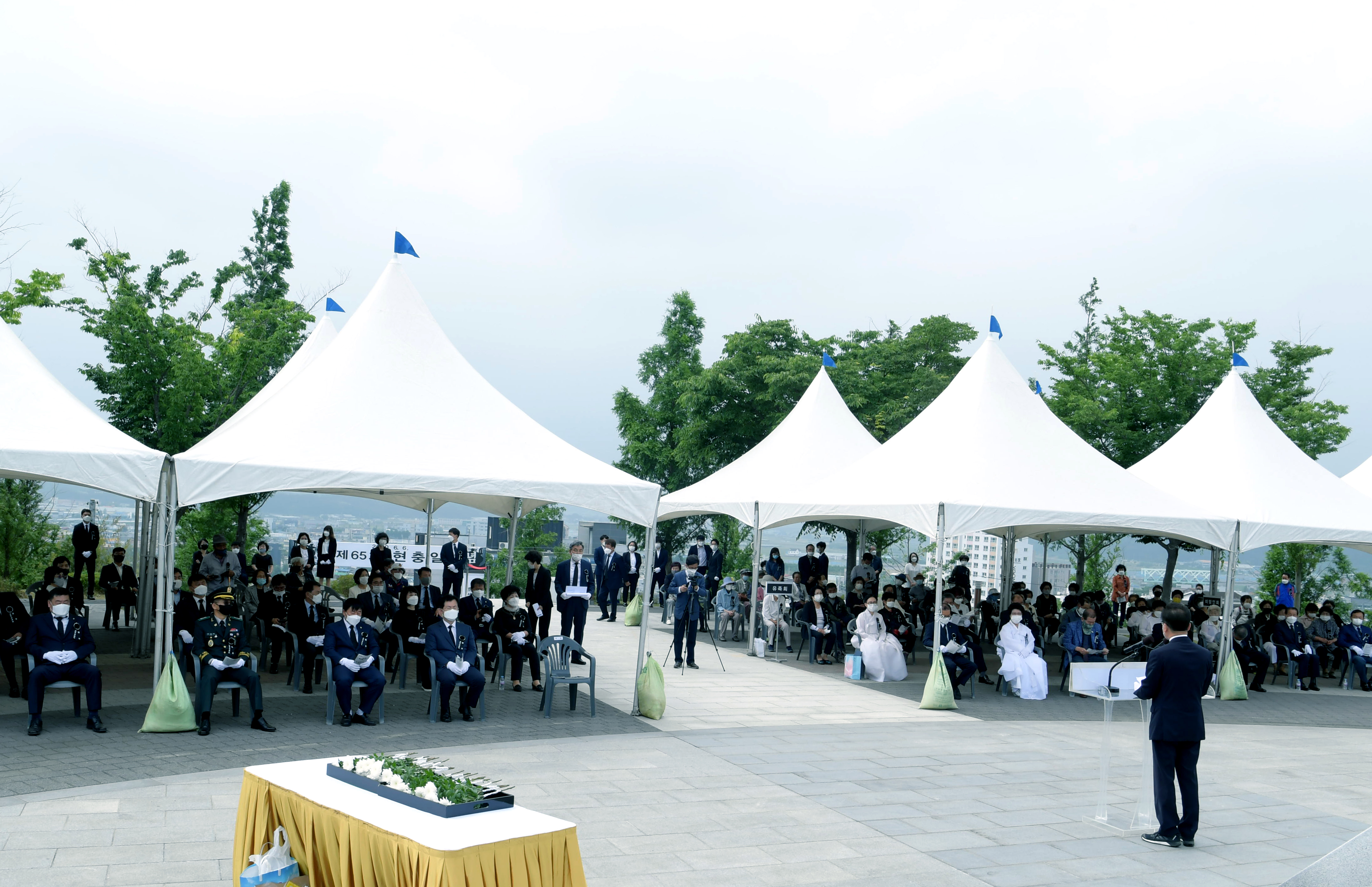 행사는 전국 동시 묵념을 시작으로 조총, 애국가 제창, 헌화 및 분향, 추념사 등의 순으로 진행됐다.