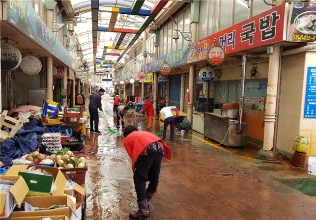 영덕군의 영해만세시장 상인회에서는 5톤 덤프트럭 15대 분량의 각종 적치물과 쓰레기들을 정리해 수년간 미뤄둔 환경정비를 완료했으며, 포항시와 영덕, 고령, 예천군 등에서도 매주 금요일을 전통시장 대청소의 날로 정해 자체적으로 운영하는 등 손님 유치에 많은 노력을 기울이고 있다.