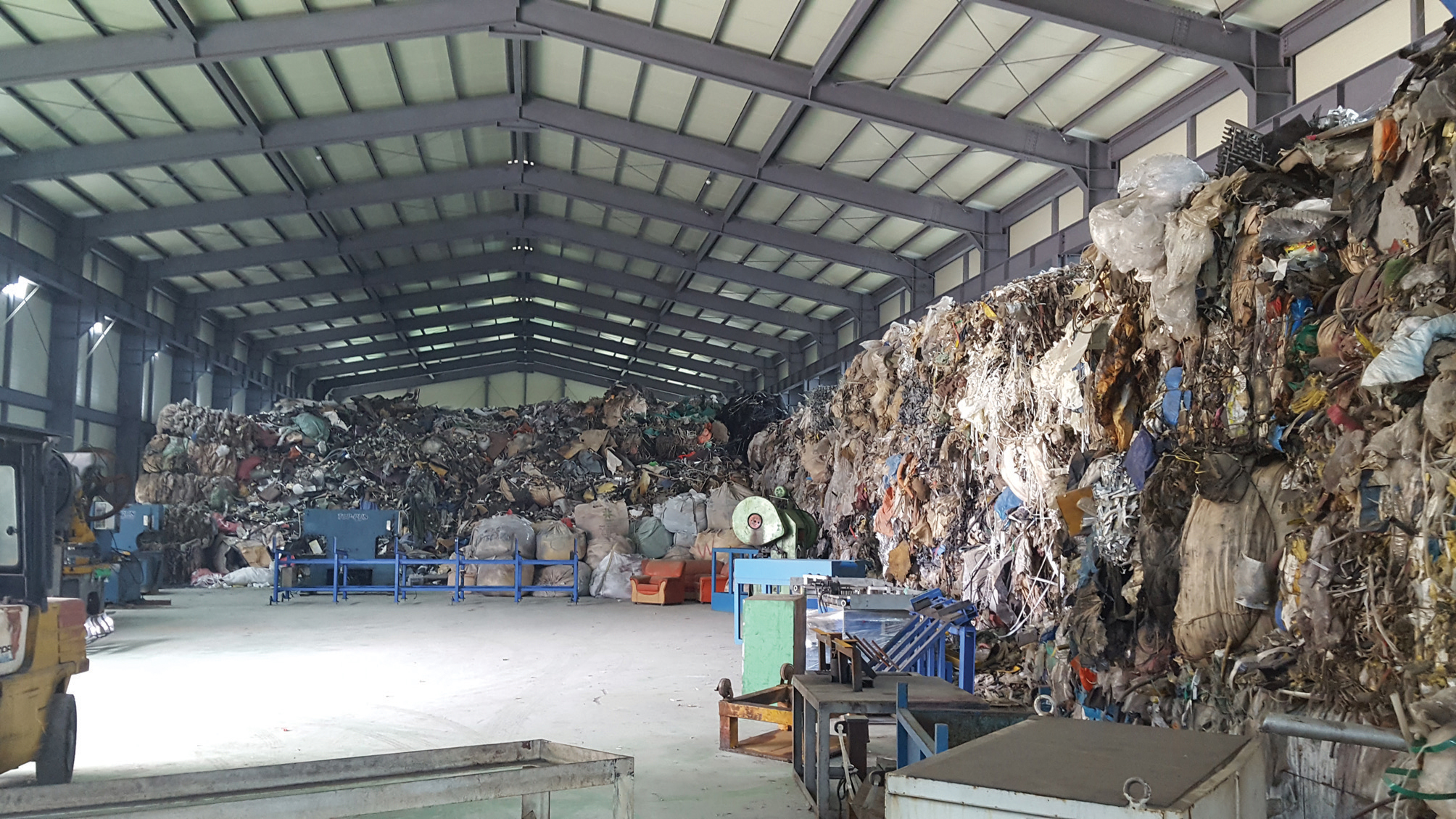 공장내부에 쌓인 폐기물