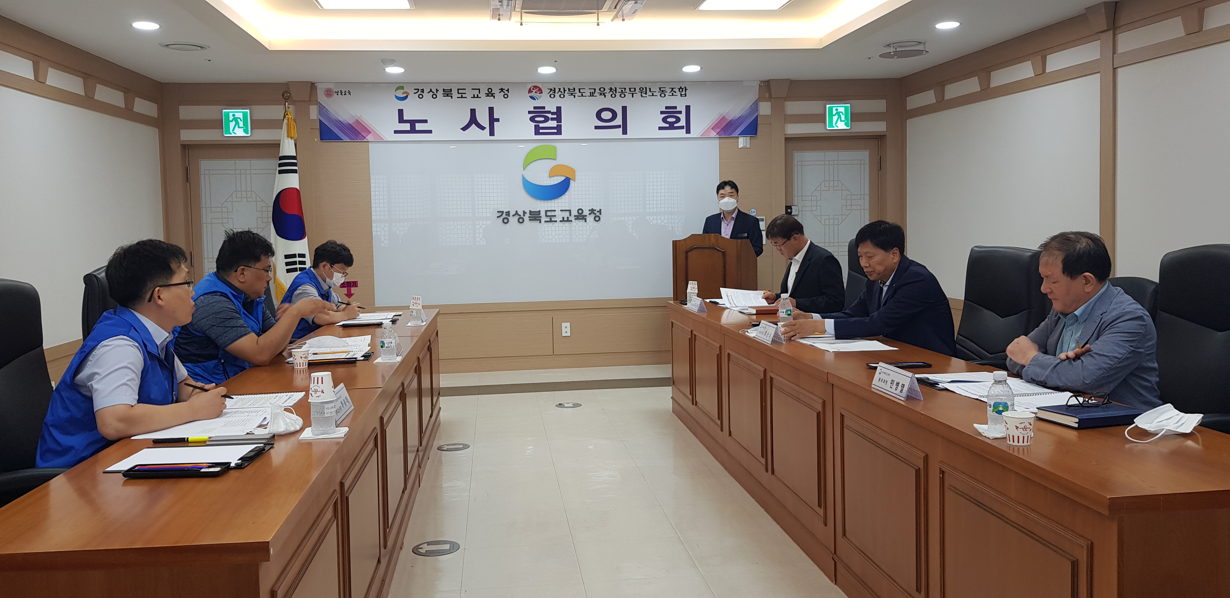 경북교육청(교육감 임종식)은 23일 정책협의실에서 최상수 행정국장과 이면승 위원장을 대표로 양측 노사협의위원이 참석한 가운데 2020년 1차 노사협의회를 개최했다.