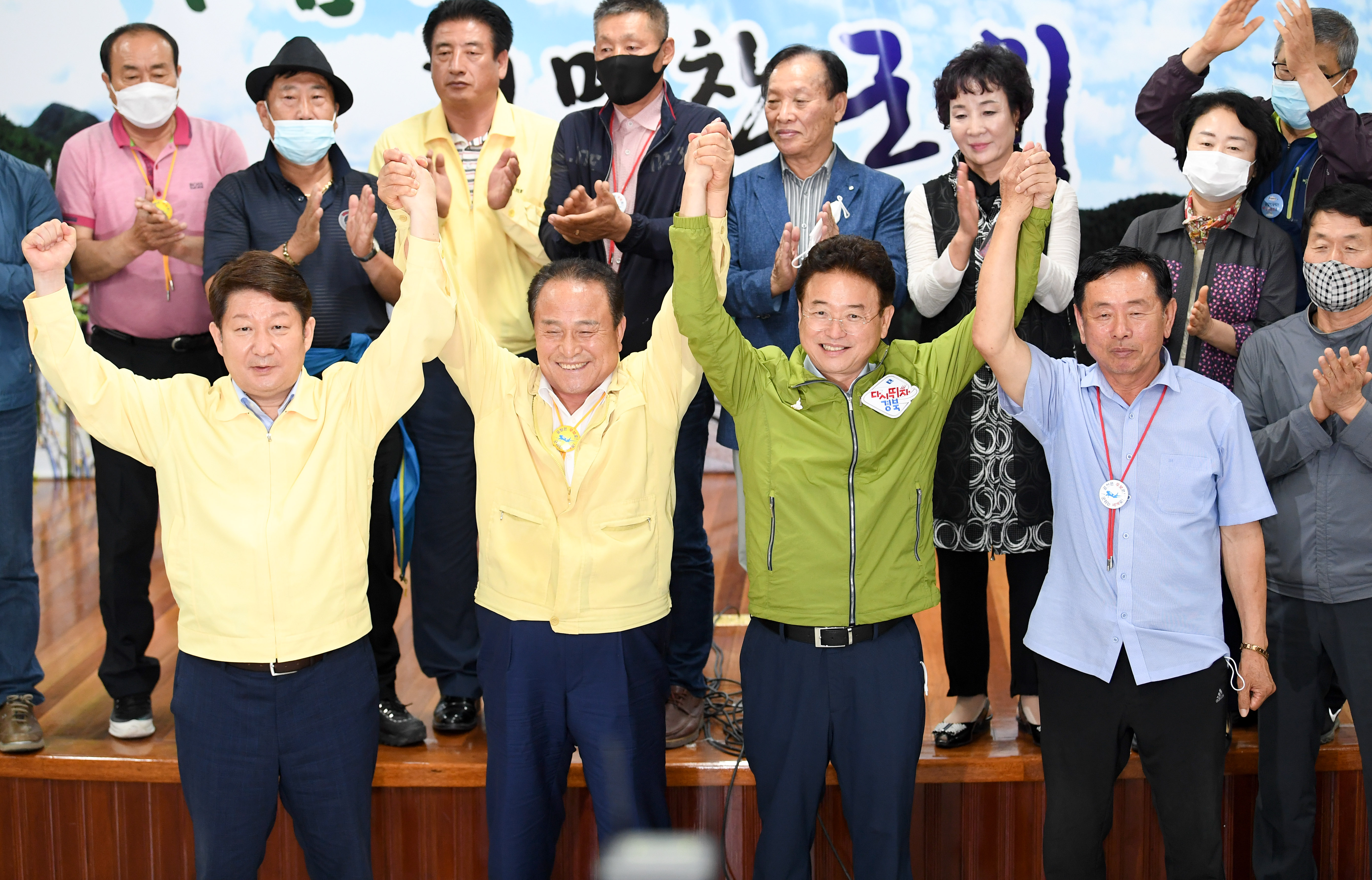 이철우 지사는 “옥동자를 낳을 때는 원래 산고가 많다. 대승적 결단해주신 김영만 군수님과 군민여러분, 그리고 공항유치위원님들께 진심으로 감사드린다. 코로나로 인해 힘들어진 경제를 일으켜 세울 대구경북 역사상 가장 큰 뉴딜사업을 뚝심있게 이끌어주신 김군수님께 다시 한번 감사의 말을 드린다.”며