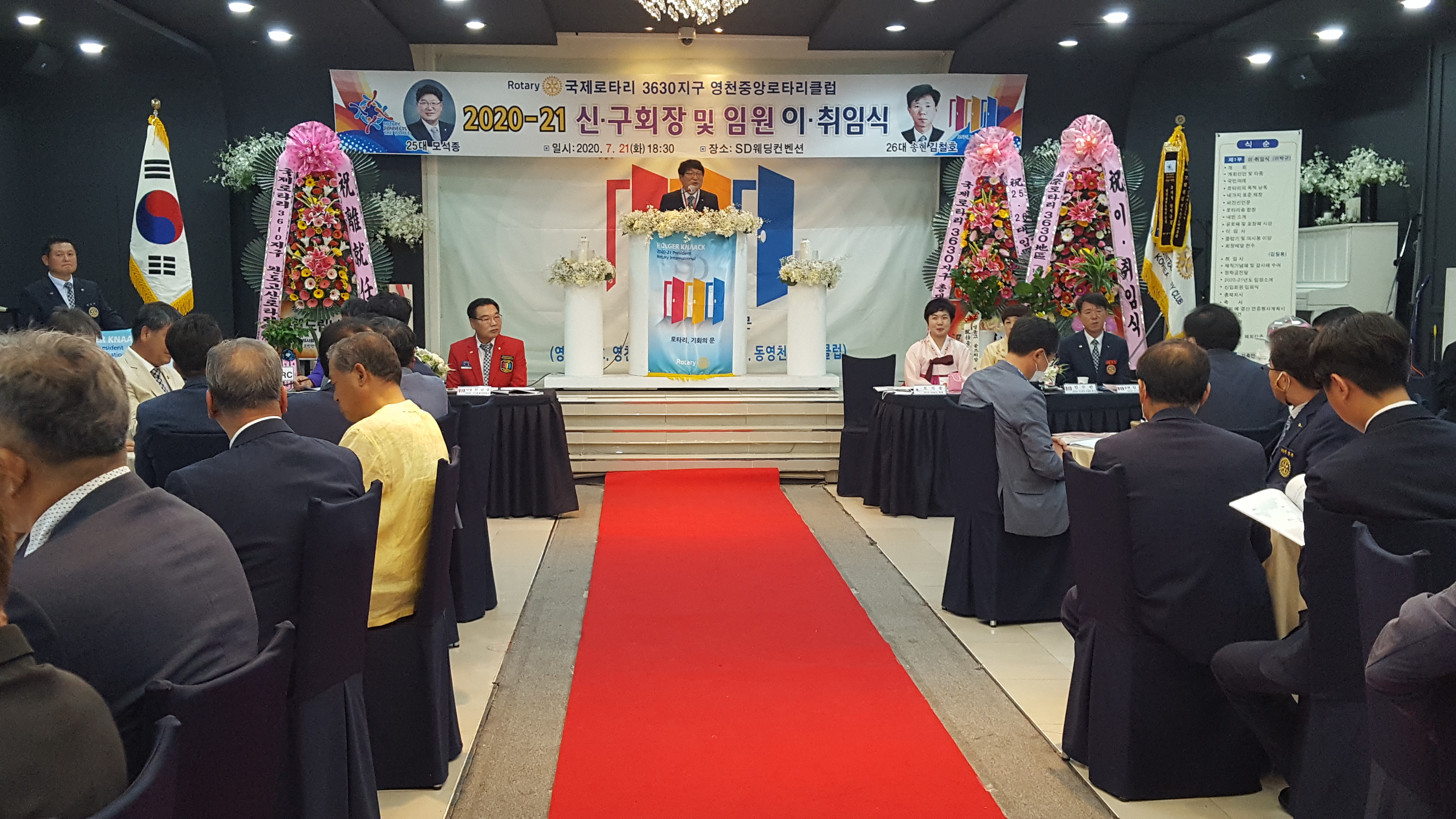 국제로타리3630지구 영천중앙로타리클럽 2020-21 신구회장 및 임원 이취임식이 지난 21일 오후 조영제 영천시의회 의장과 시의회 의원, 박영환 도의원, 자매클럽인 완도고산 로타리클럽 정남진 회장, 천규종 로타리클럽 8지역대표 및 박주득 박동운 중앙로타리 역대 회장단과 회원 등 200여명이 참석한 가운데 열렸다.