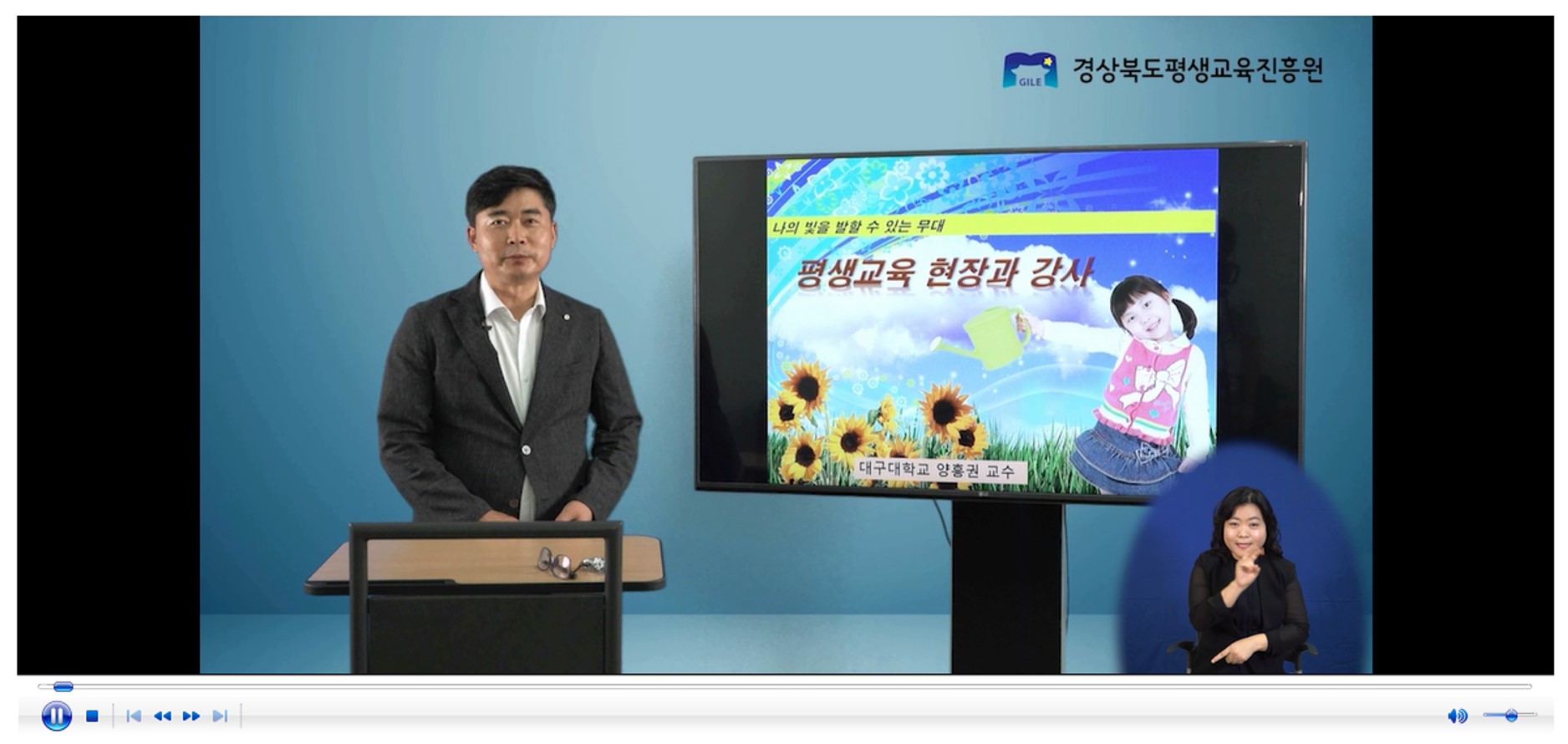 이번 연수는 청각 장애인 평생학습 강사의 전문성 강화를 위해 수화를 지원하며, 언제 어디서든 필요한 교육과정 복습이 가능하다.