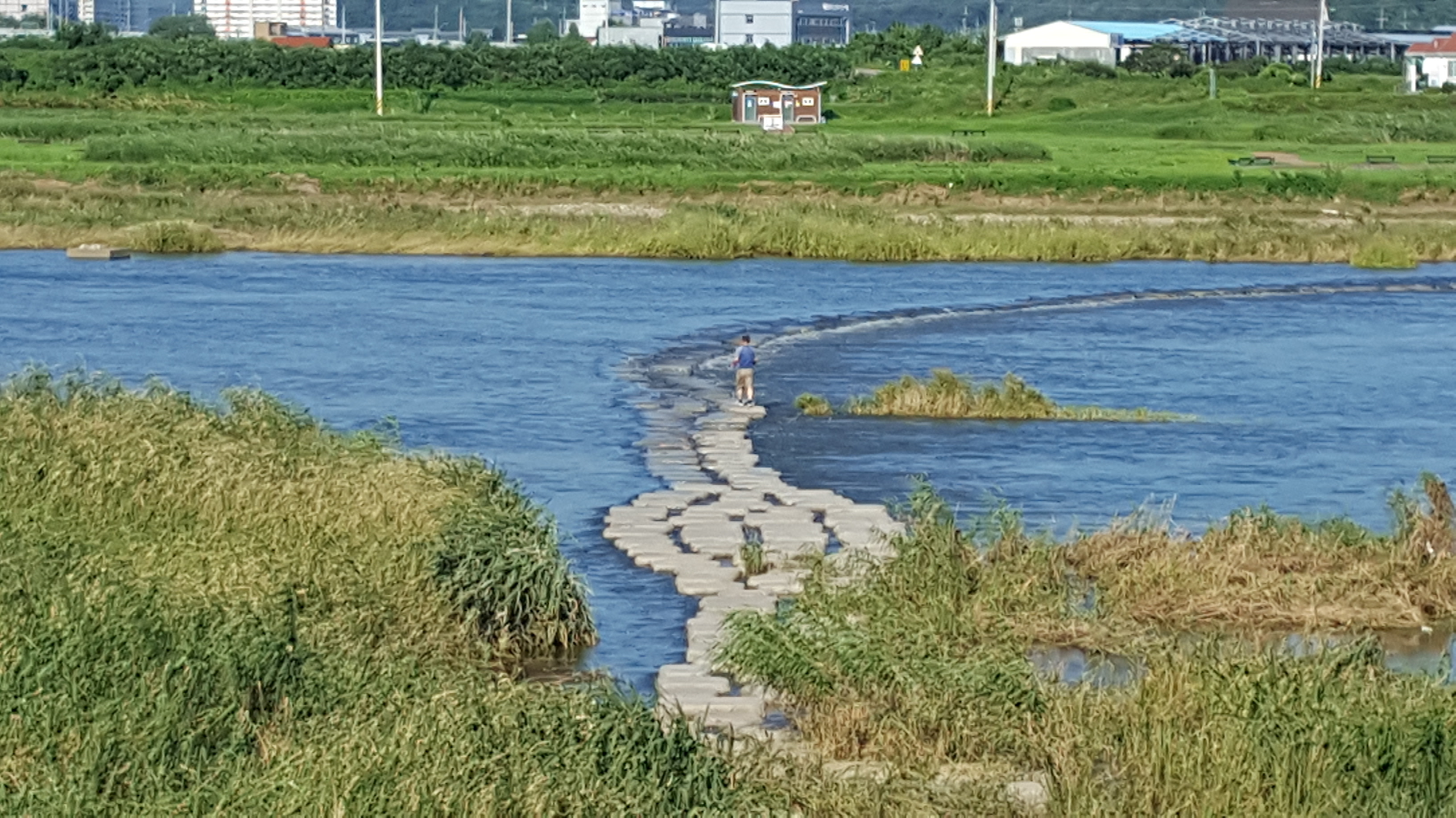 더 밑에 있는 하근찬 징검다리는 전체가 물에 잠겨 이런 현상을 관찰하지는 못했다.