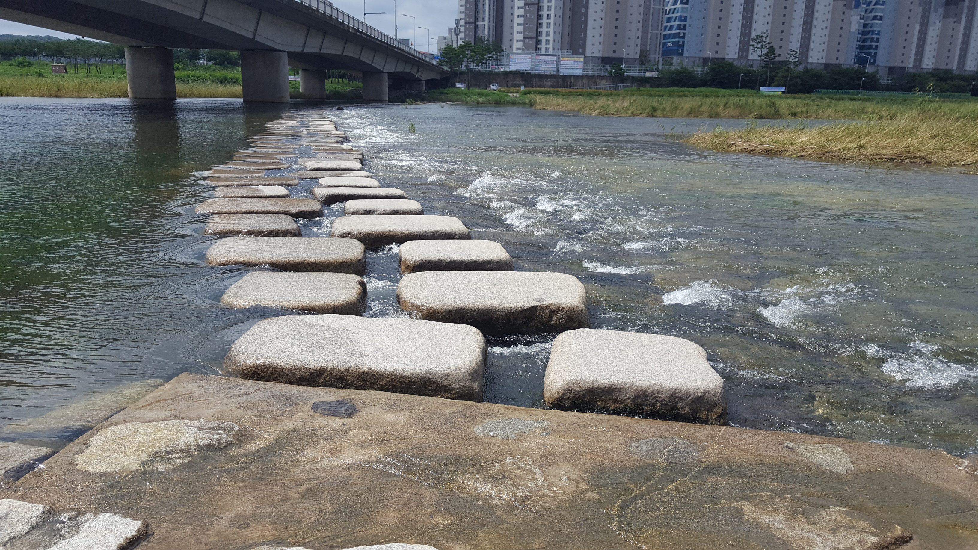 입구에서부터 높낮이가 엉망인 영화교 징검다리