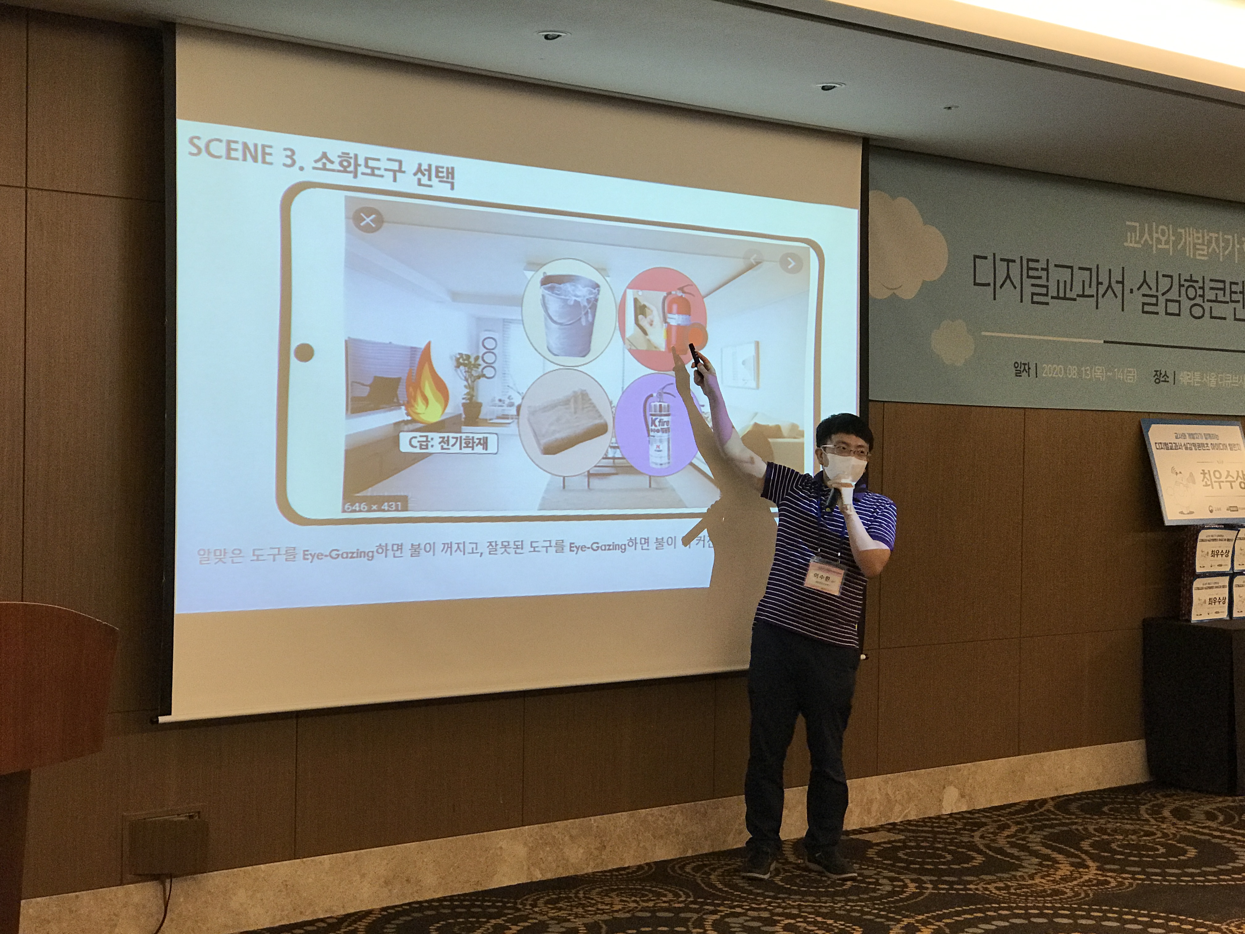 영천중앙초등학교(교장 박진서) 이수환 교사는 8월 13일 쉐라톤 디큐브시티 호텔에서 열린 디지털 교과서·실감형 콘텐츠 아이디어 챌린지에 참여해 우수 아이디어를 수상했다.