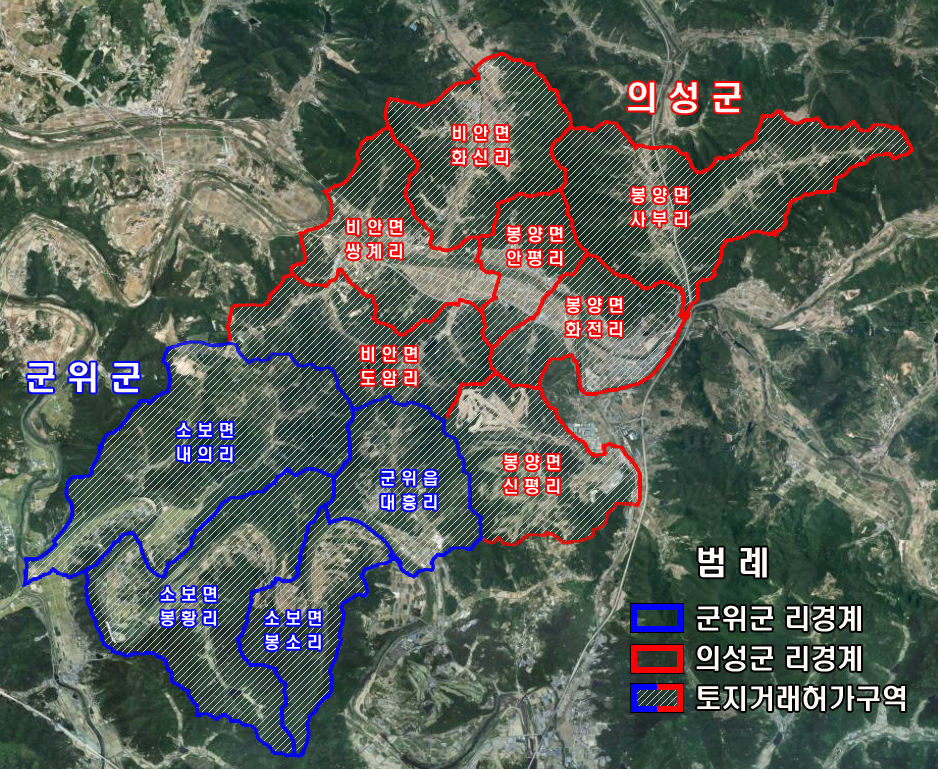 이번 토지거래허가구역 지정은 대구경북 통합신공항이전 등 대규모 개발사업을 앞두고 있어 개발기대심리에 편승한 투기수요가 발생할 우려가 높다는 판단에 따라 투기방지 및 원활한 사업추진을 위한 조치이다.