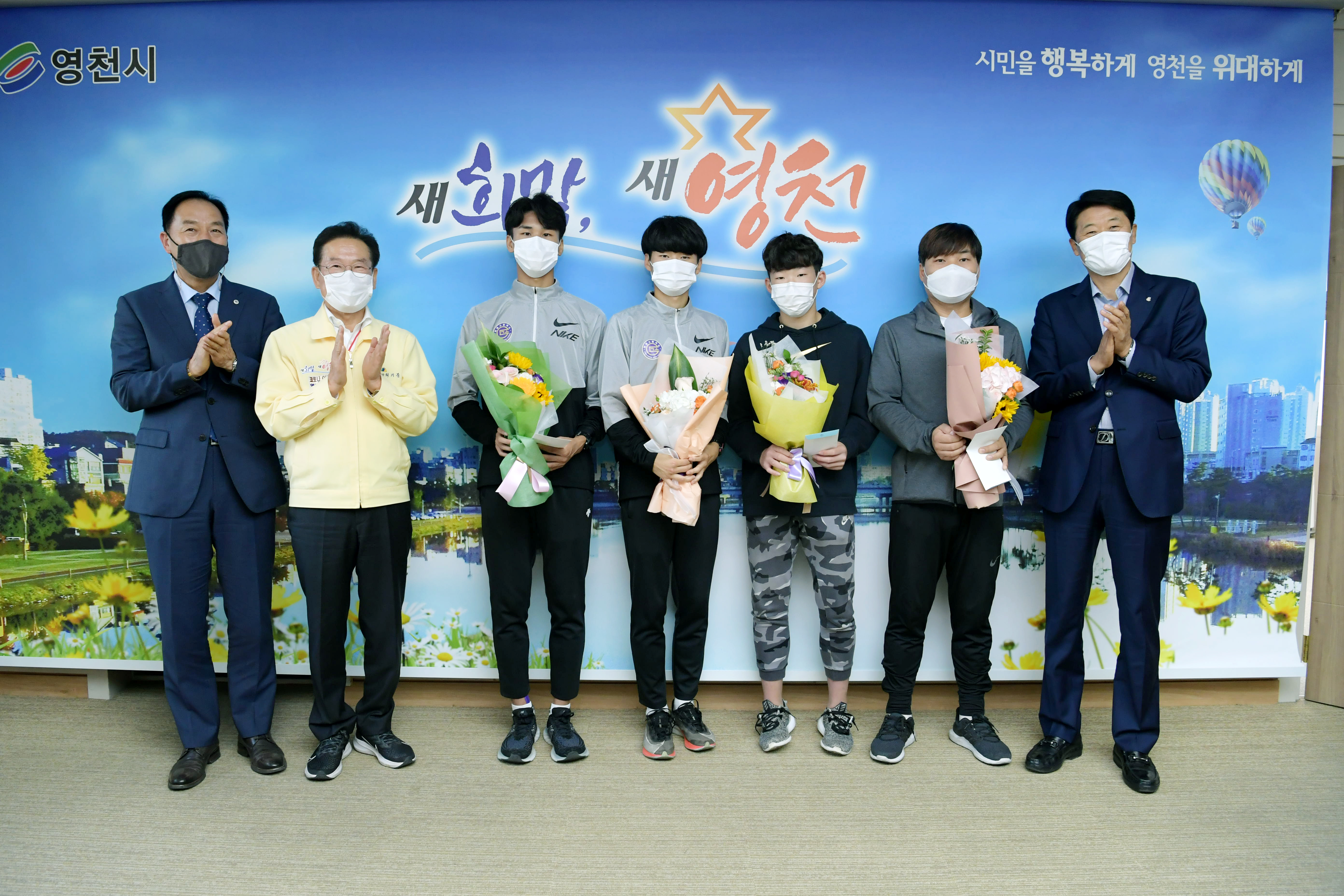영천시는 10월 15일 시장실에서 최근 전국대회에서 우수한 성적을 거둔 옥시원(영동중 2년), 임형윤(영동고 3년), 이재웅(영동고 3년) 선수들을 초청해 그간의 노력에 대해서 격려했다.