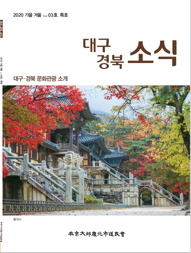 재경대구경북 700만 향우인을 위한 회지인 대구경북 소식‘2020 대구·경북 문화관광 특집호를 발간해 가을겨울에 방문하면 좋을 경북 여행지를 소개하고 대구경북 향우인들의 고향 방문과 함께 인접 경북지역의 문화관광 여행지를 돌아볼 수 있도록 다양한 정보를 수록했다.