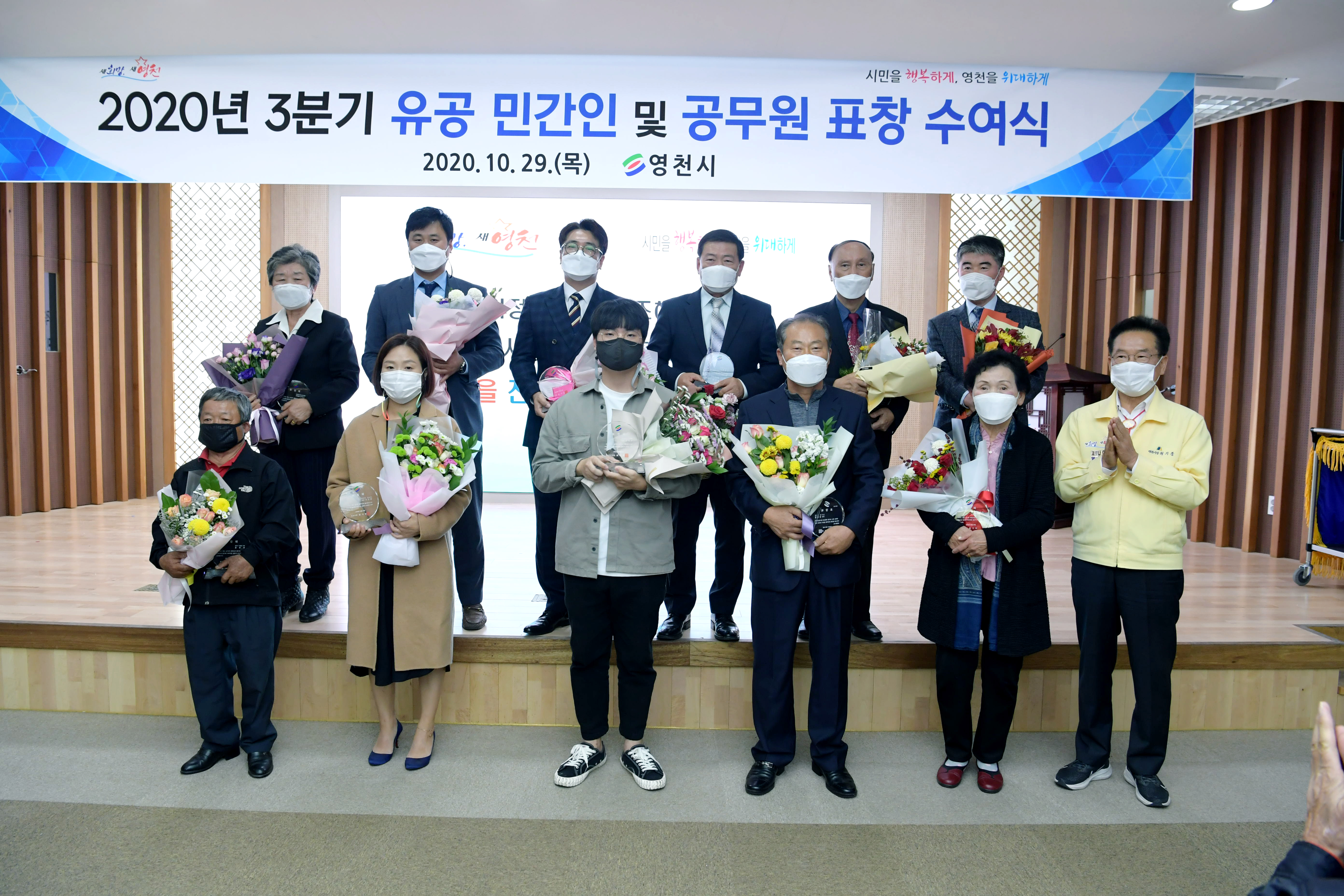 영천시는 10월 29일 시청 대회의실에서 지역발전과 시민 복리증진에 기여한 시민 및 공무원에 대한 2020년 3분기 표창 수여식을 개최했다.