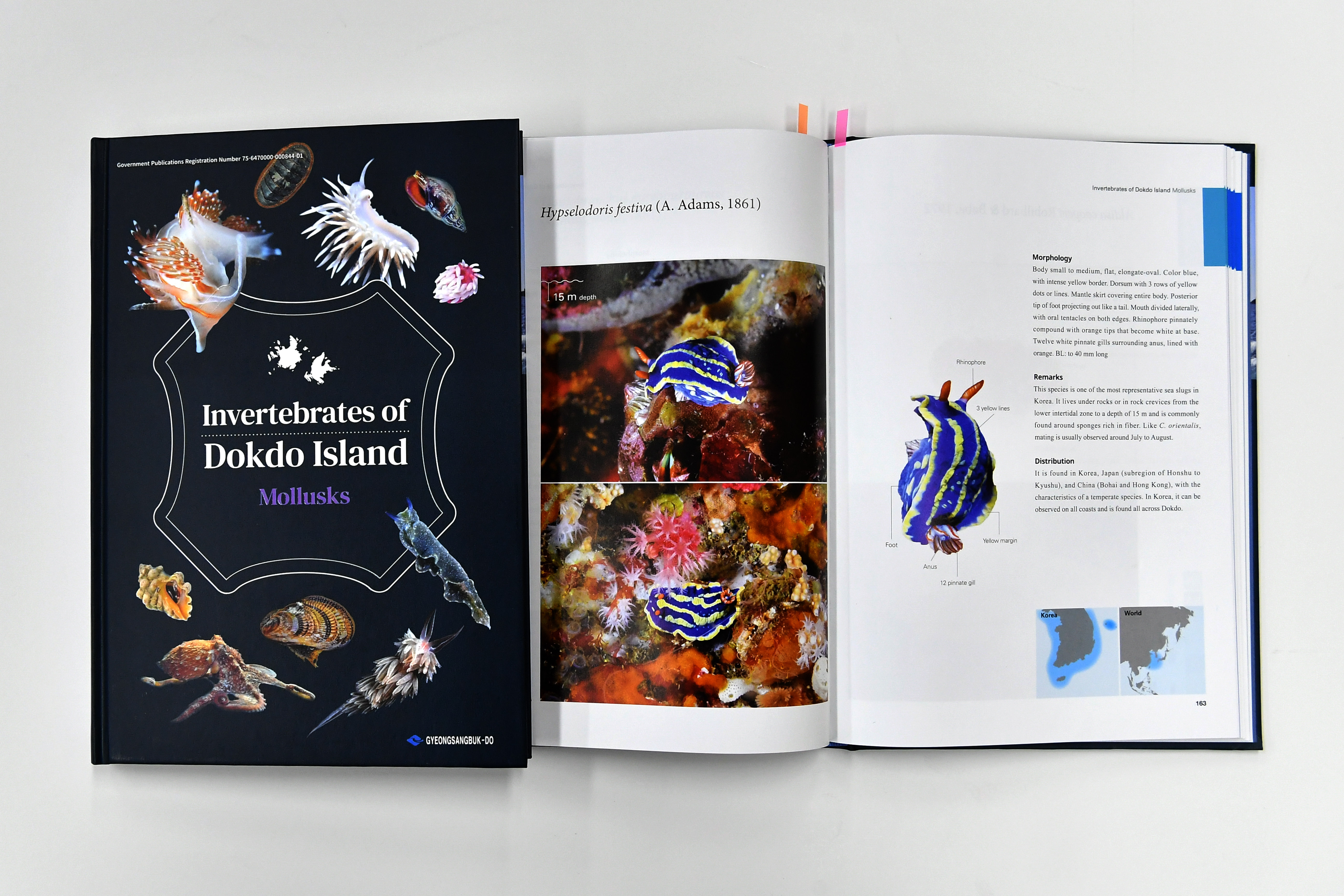 경상북도는 독도 해역에서 서식하는 연체동물 104종을 사진과 함께 수록한 독도의 무척추동물 연체동물 Invertebrates of Dok do Island Mollusks’ 영문판을 발간했다.