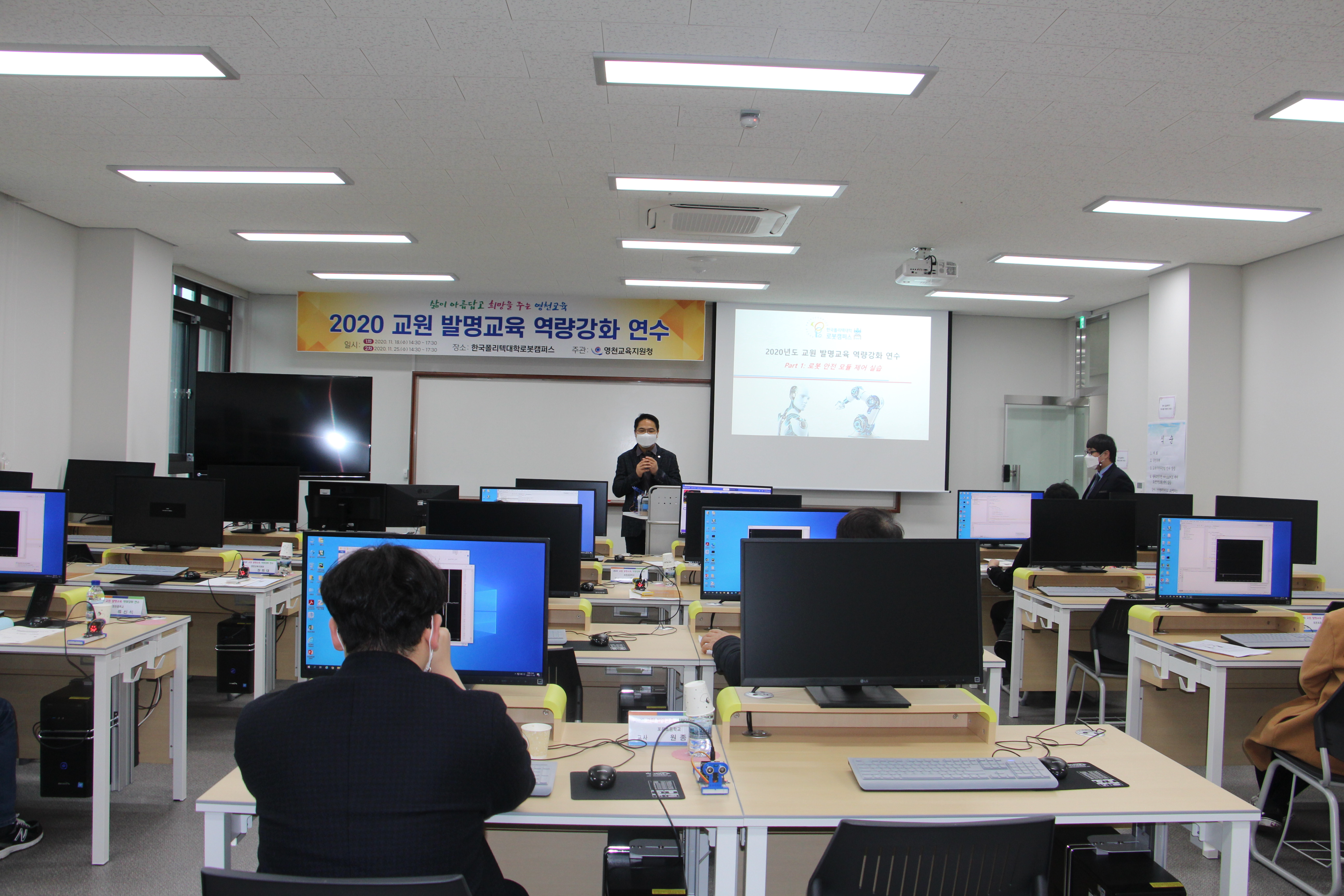 영천교육지원청(교육장 양재영)은 11월 18일과 11월 25일 한국폴리텍대학 로봇캠퍼스에서 관내 초·중학교 교원 11명을 대상으로 교원 발명교육 역량강화를 위한 연수를 실시했다.