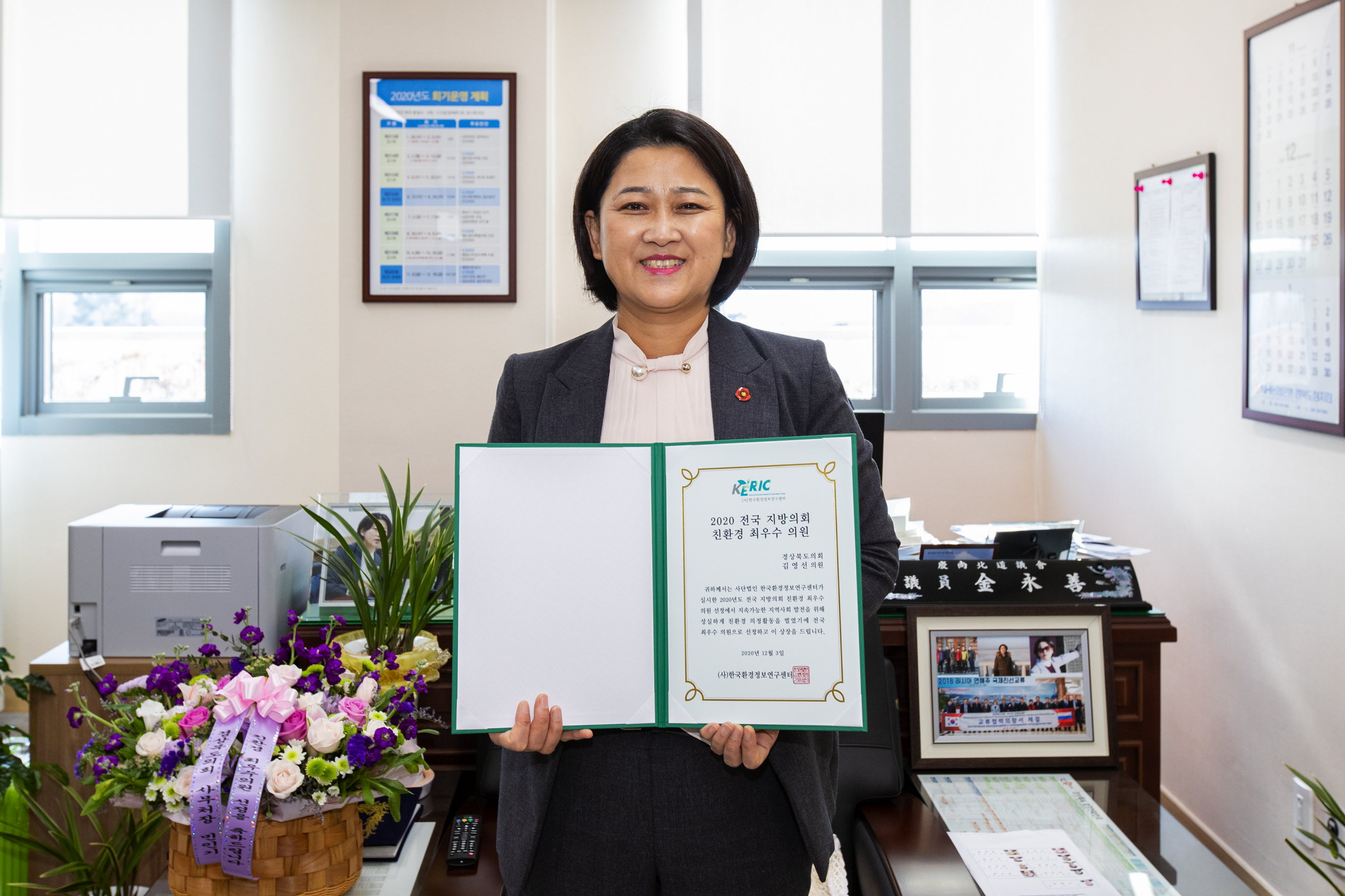 경상북도의회 김영선 의원(더불어민주당)()한국환경정보연구센터(회장 이재성)가 주관하는 ‘2020 전국지방의회 친환경최우수의원으로 선정되었다.