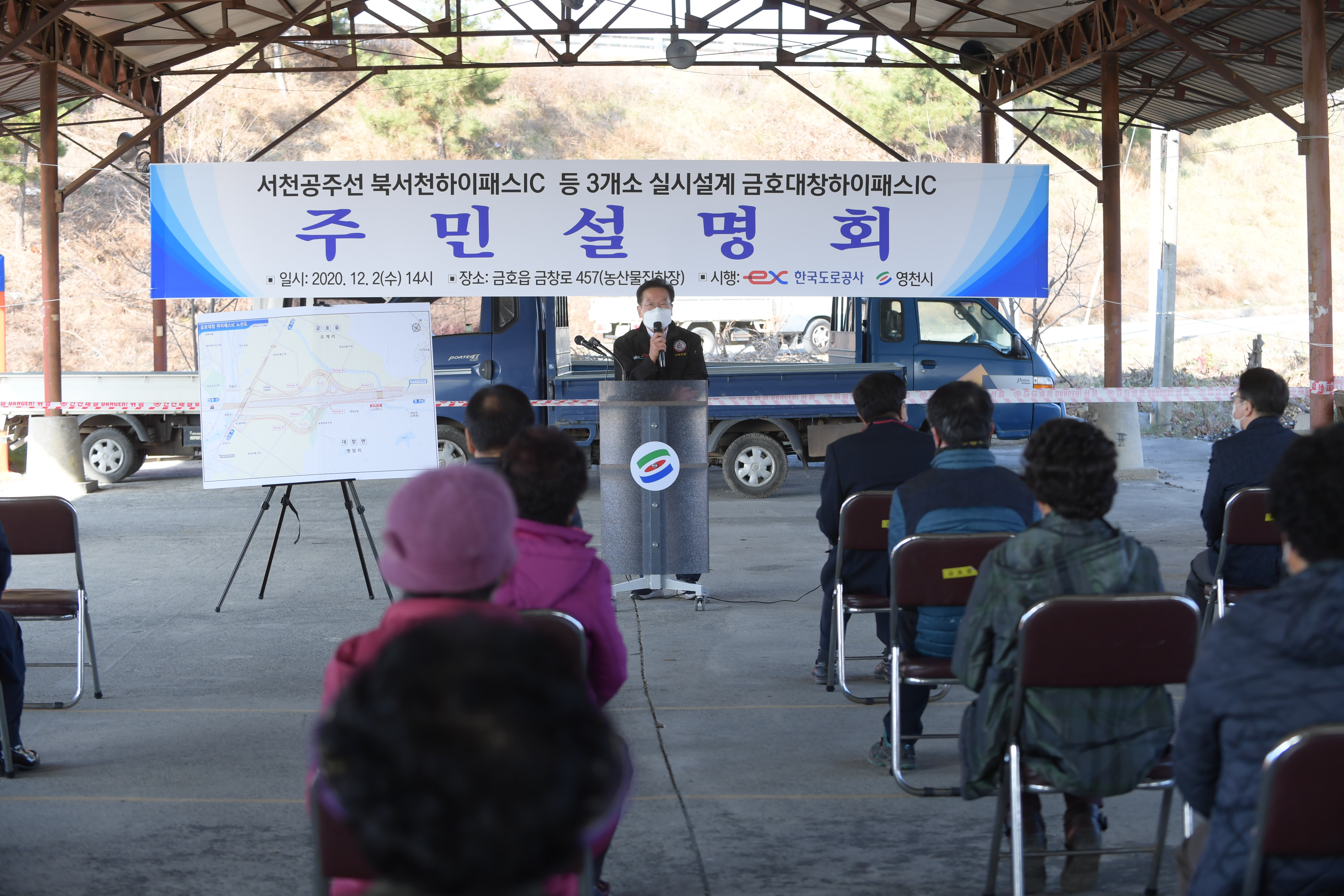 영천시와 한국도로공사는 12월 2일 농산물집하장(영천시 금호읍 금창로 457)에서 주민 100여명이 참석한 가운데 금호대창 하이패스IC설치공사 관련 주민설명회를 개최했다.