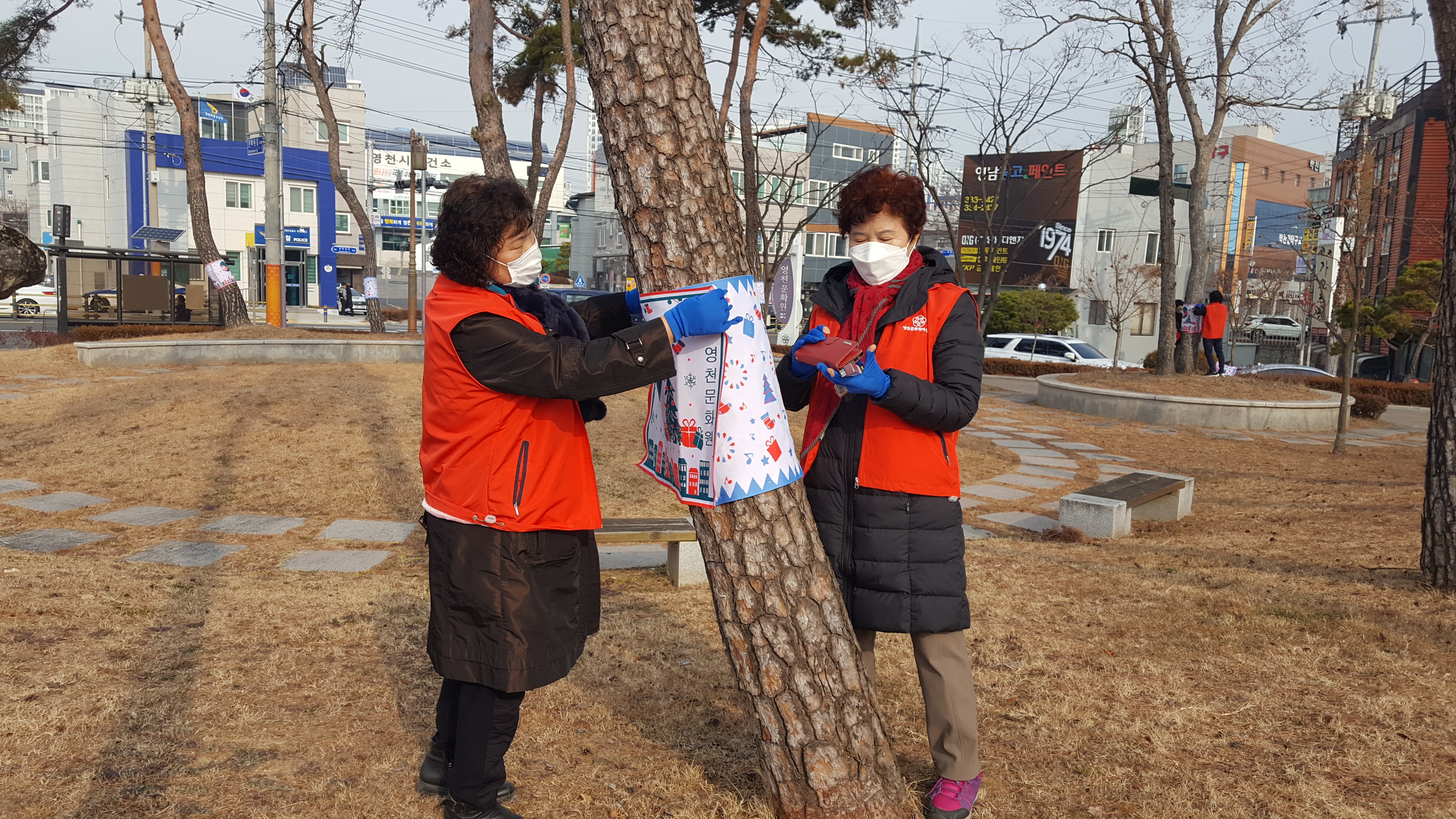 영천문화원(원장 정연화) 여성회(회장 민순남)는 12월 11일 문화원 나무에 대하여 겨울철 이색 해충포집기를 입혔다. 회원들은 나무마다 이색 해충포집기 2-3장씩을 입히고 나무들에 겨울을 잘 나기를 기원했다.