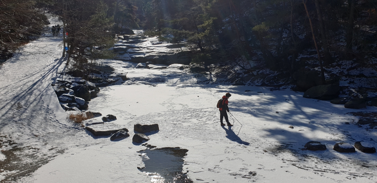 치산 계곡과 공산폭포는 눈과 얼음으로 덮여 겨울중에 최고 추운 한겨울 기운이 기세를 떨치고 있어 마치 남극에 온 것 같은 느낌이다. 독자가 제공한 사진은 공산폭포 일대다.