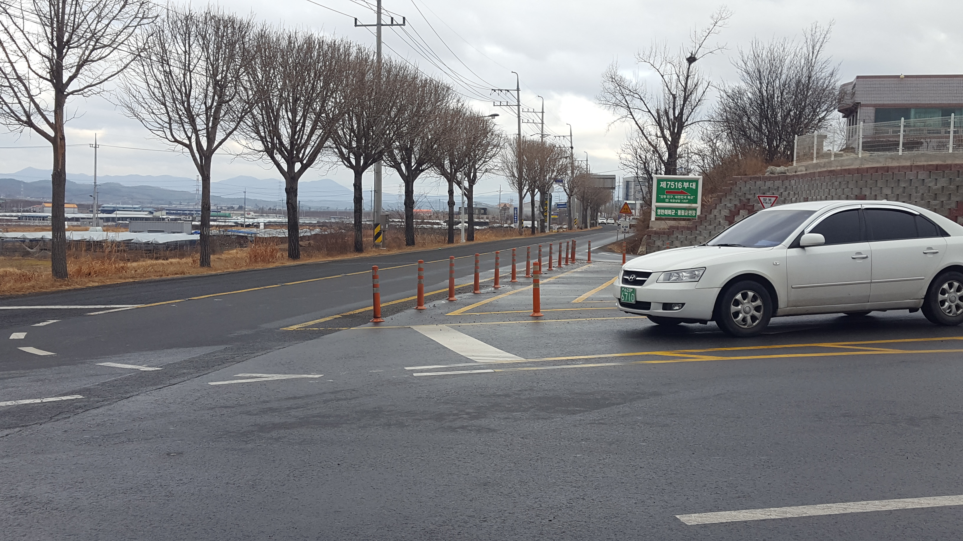 시내로 들어오는 방향에서 보면, 표지판도 없어 도로가 잘 보이지 않는다.