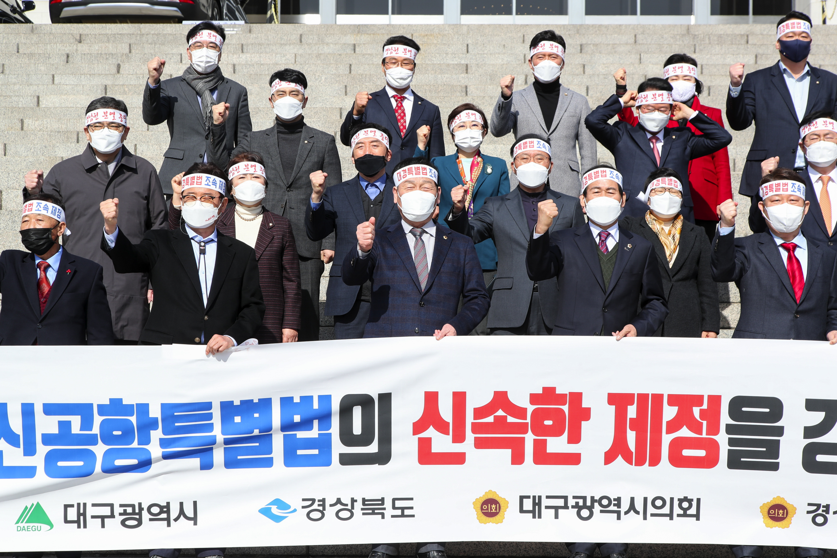 경상북도의회 고우현 의장과 신공항이전지원특별위원회 홍정근 위원장(경산) 2. 23() 국회에서 진행된 대구경북신공항 특별법 제정 무산에 따른 성명서 발표에 이철우 도지사, 권영진 대구시장과 함께 참석해 대구경북신공항 특별법 제정을 촉구했다.