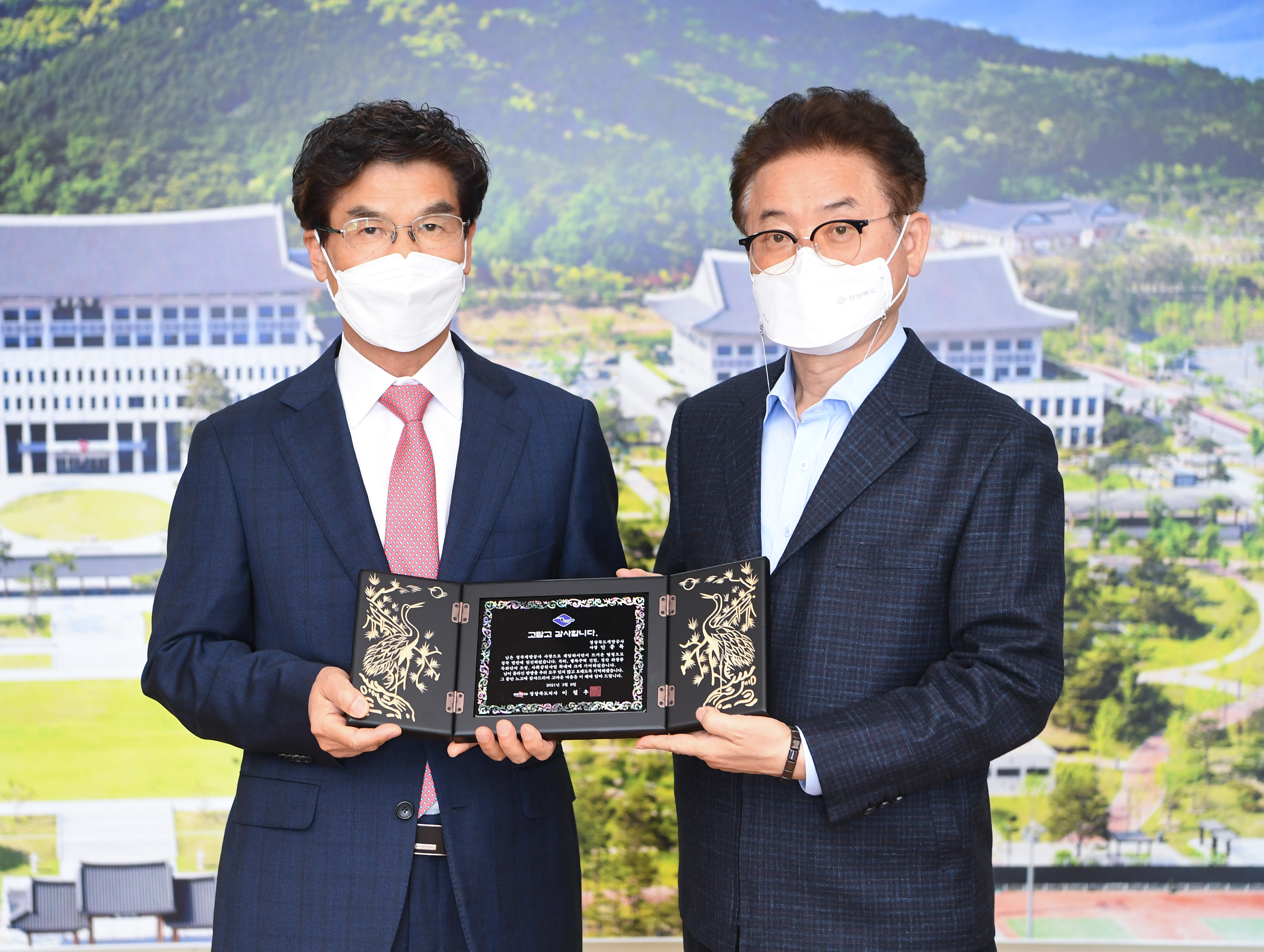 이철우 도지사는 8일 접견실에서 경북개발공사 사장(2018.3.9. ~ 2021.3.8)으로 재직하다 퇴임하는 안종록 사장에게 공로패를 수여했다.