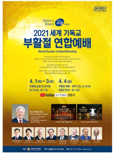 2021 세계기독교 부활절 연합예배가 온라인으로 열린다.