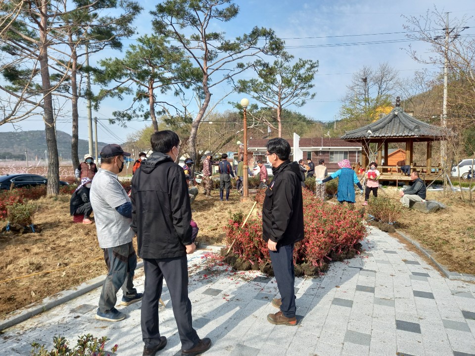 이날 식목행사에는 마을주민을 비롯해 우득정 면장과 직원들, 그리고 조영제 시의회 의장이 참석해 함께 식재하기도 했다.