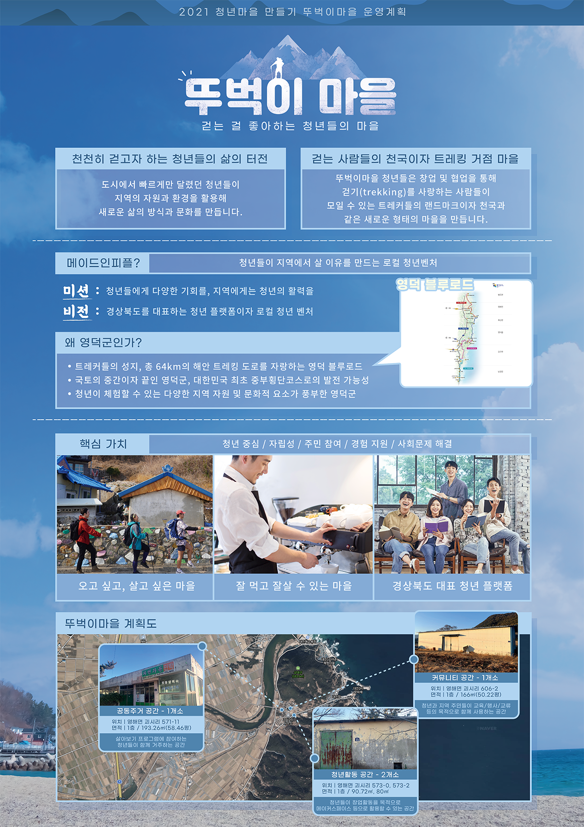 경북도는 2021년 행정안전부 청년마을 만들기공모 사업에 2개소가 선정되는 쾌거를 달성했다.