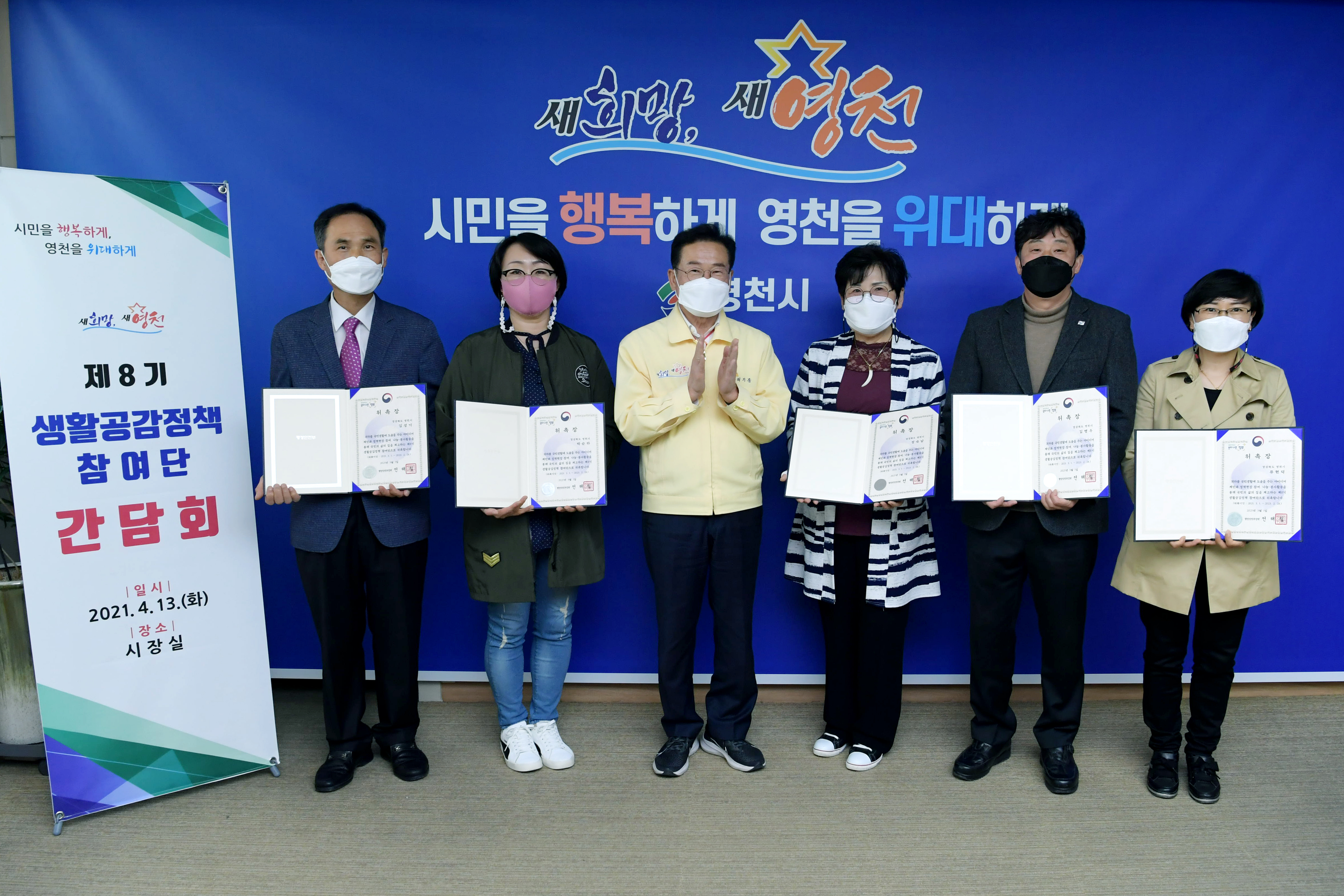 영천시는 4월 13일 시장실에서 제8기 영천시 생활공감정책 참여단(회장 김병우) 간담회를 개최했다.