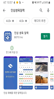 플레이스토어(안드로이드폰)에서 인삼생육달력을 검색해 설치하면 누구나 이용가능하다.