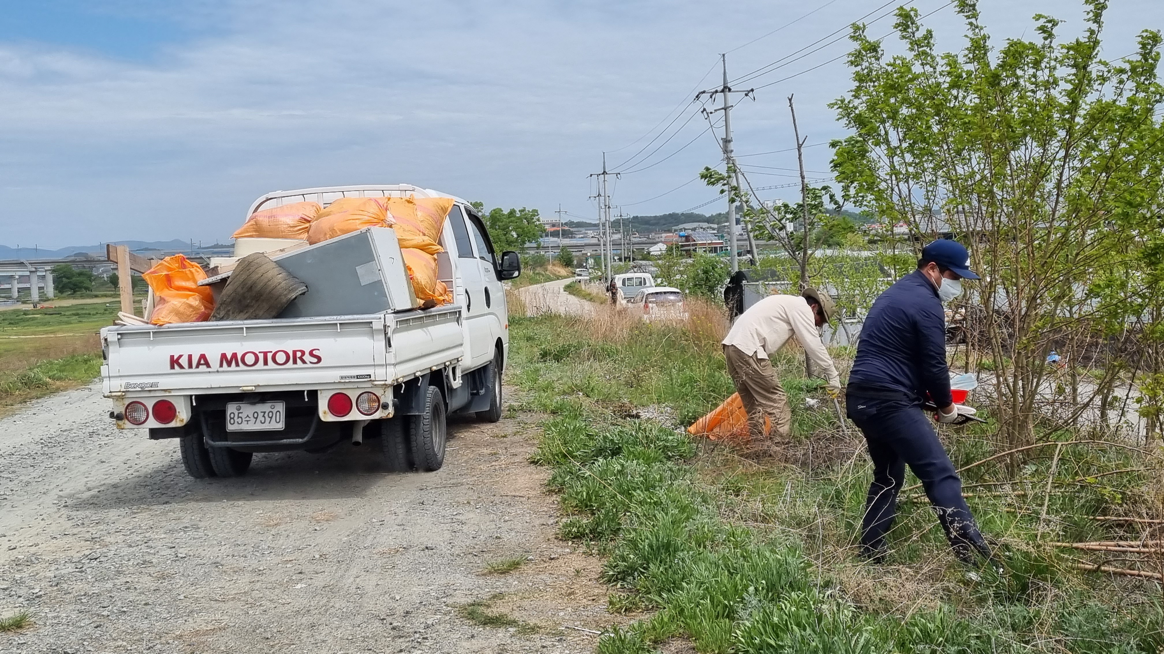 수거한 쓰레기는 마대에 담아 트럭에 싣고 트럭에 가득차면 남부동 사무소 마당에 모아두고 마무리 처리를 부탁했다.