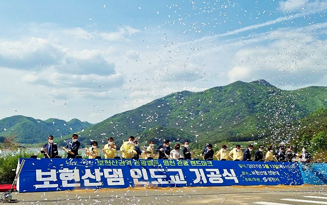 영천시는 보현산댐을 가로지르는 보현산댐 인도교(출렁다리)가 오랜 준비 기간을 거쳐 5월 13일 첫 삽을 떴다.