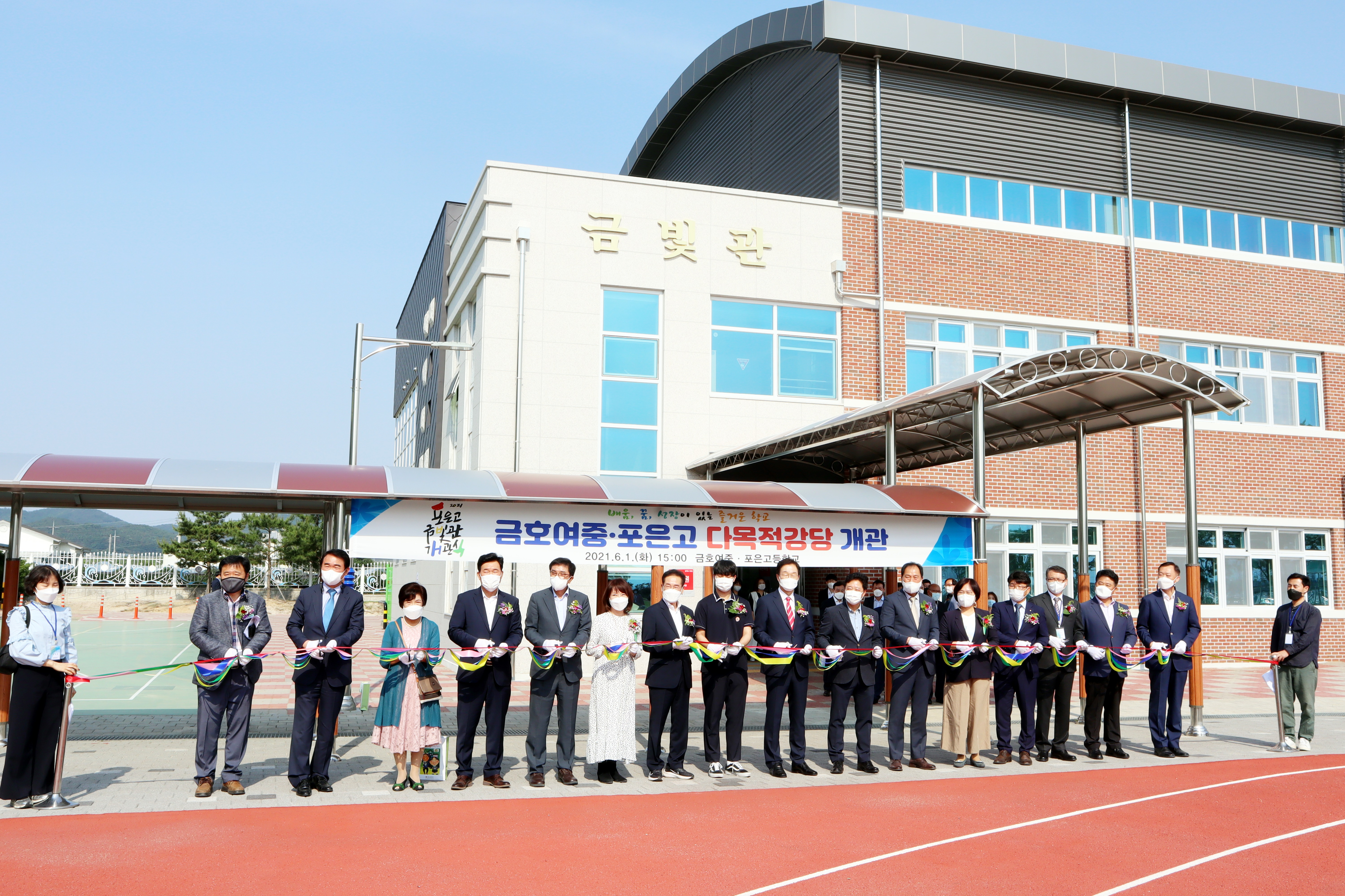 금호여중·포은고(교장 박영남)는 6월 1일 학교에서 다목적 강당 ‘금빛관’ 개관식을 했다.