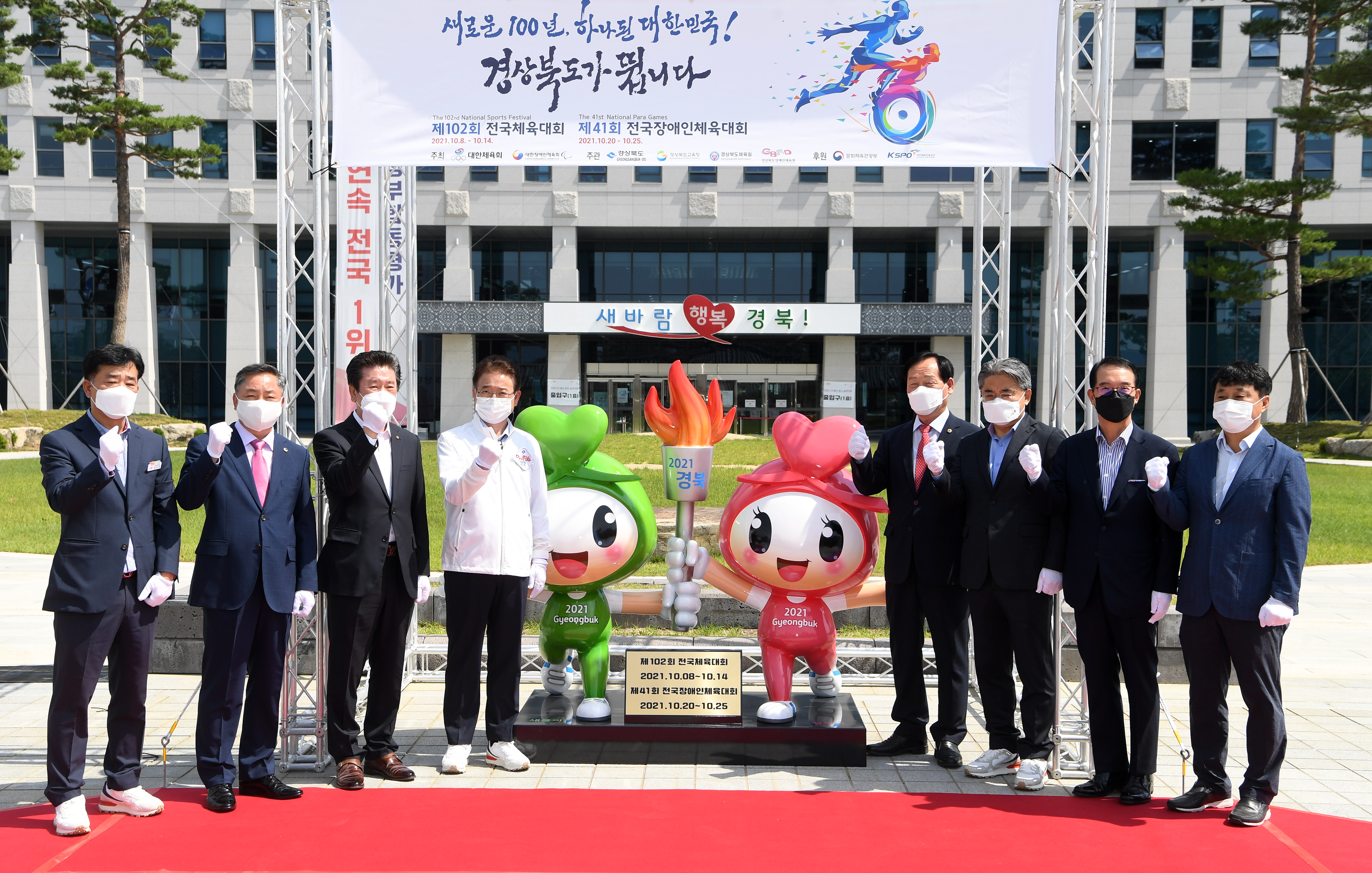 경상북도는 10일 도청 안민관 전정에서 오는 10월 구미에서 개최되는 전국(장애인)체전의 성공개최를 위해 전국체전마스코트(새롬이, 행복이) 조형물 제막식과 100년의 역사를 담은 체전 사진전을 열었다.