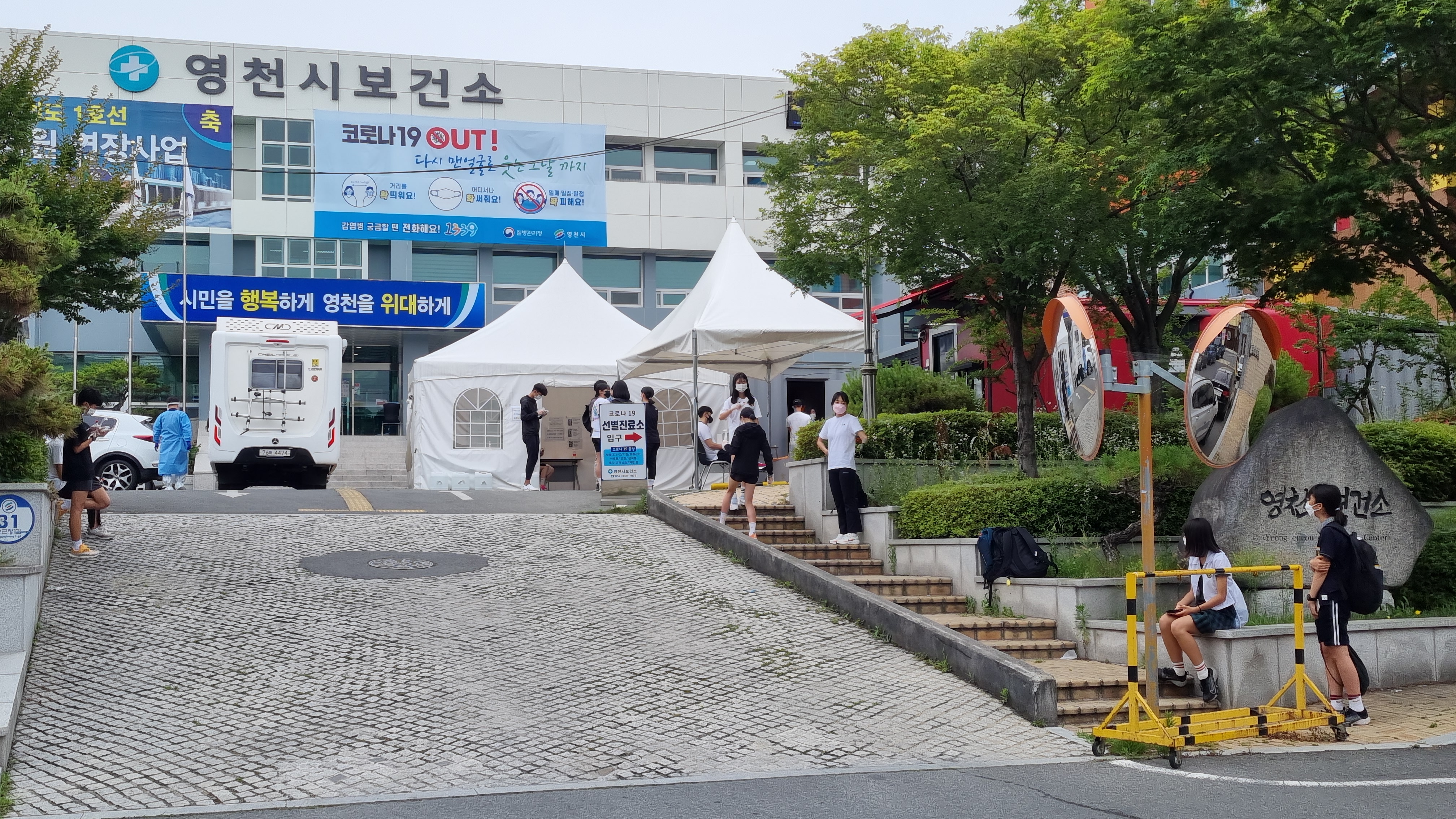 영천시보건소에는 코로나19 검사하려는 학생들로 북적이고 있다. 6월 10일 금요일과 토요일에는 학생 및 학생과 관련한 학부형 수백여 명이 검사하고 돌아갔다.