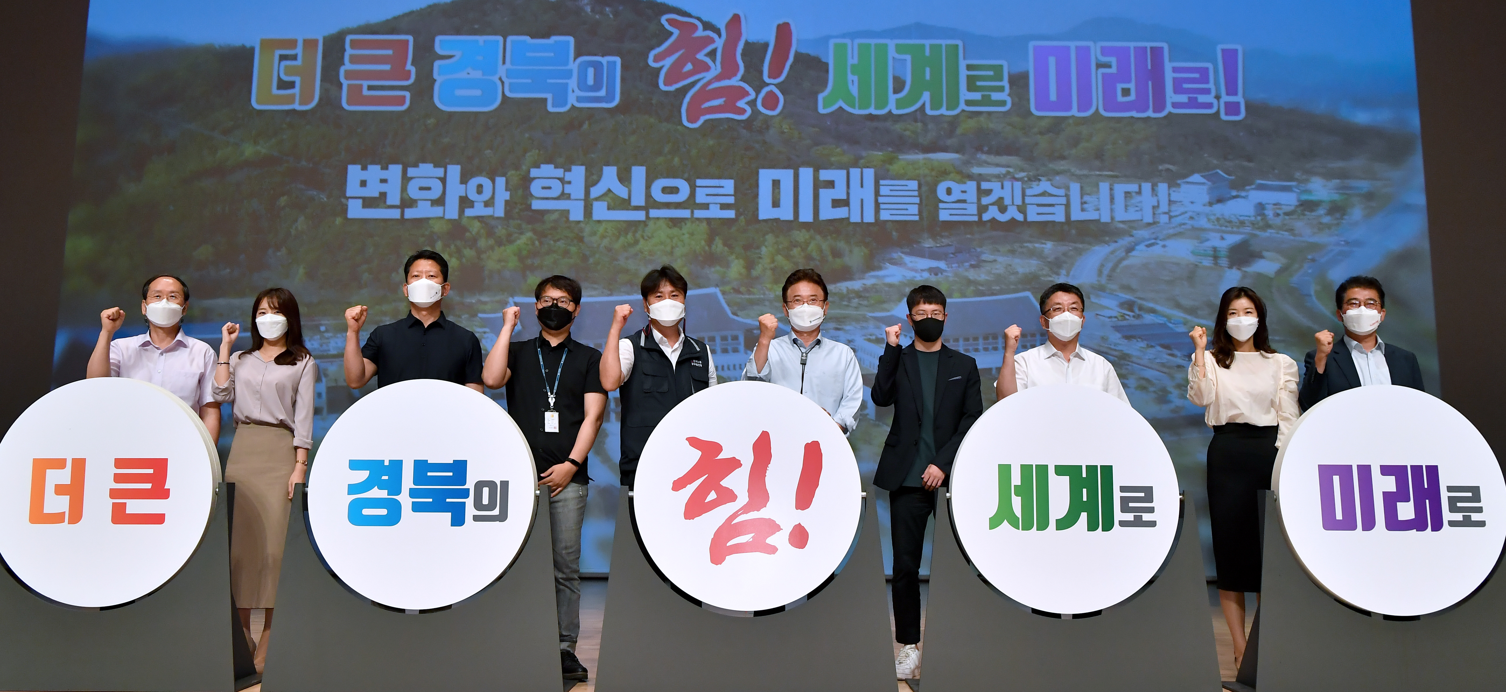 도정 성과 퍼포먼스에서는 민선7기 3년 동안 일자리 42만개 창출 및 국비 28조원 확보, 경북의 신성장판 구축, 경북형 코로나 방역 등 각 분야에서 노력한 직원들과 신규 및 전입 공무원들을 소개하고 앞으로 더 많은 성과를 만들어 경북이 세계로 미래로 나아가자는 의미의 다짐을 나타냈다.
