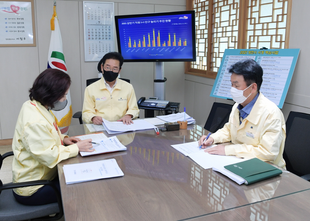 이번 업무보고는 부서별 주요 핵심사업을 신속하게 파악하여 지역 발전의 추진력을 높이기 위한 것으로 일방적인 지시·전달사항 위주의 업무보고를 지양하고 시장과 부서장 간 1대1 대화 형식으로 진행하며 주요 사업에 대한 향후 발전 방향 및 대책 등을 자유롭게 함께 논의하는 소통에 초점을 맞췄다.