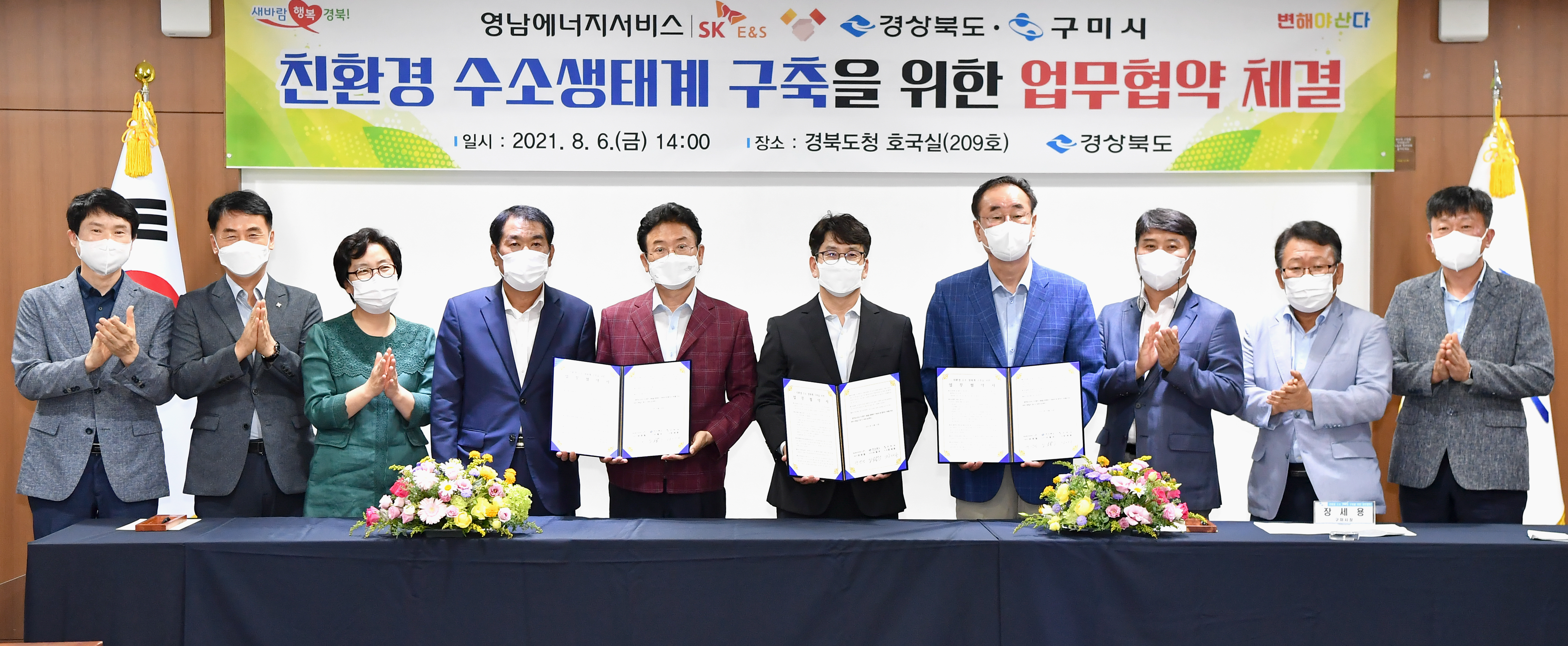경상북도는 6일 도청회의실(호국실)에서 이철우 도지사, 장세용 구미시장, 양영철 영남에너지서비스 대표이사 등이 참석한 가운데‘친환경 수소생태계 구축’을 위한 업무협약(MOU)을 체결했다.