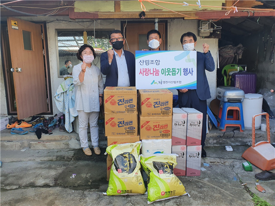 영천시산림조합(조합장 이성기)은 9월 8일, 기업의 사회적 책임을 실천하고 나눔 확산을 위해 영천시 남부동 소재의 다자녀(4자녀) 가정을 방문하여 격려하고 생활물품을 전달했다.