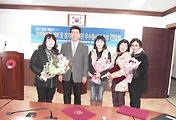 김시장과 정 원장이 협약서를 보이고 있다