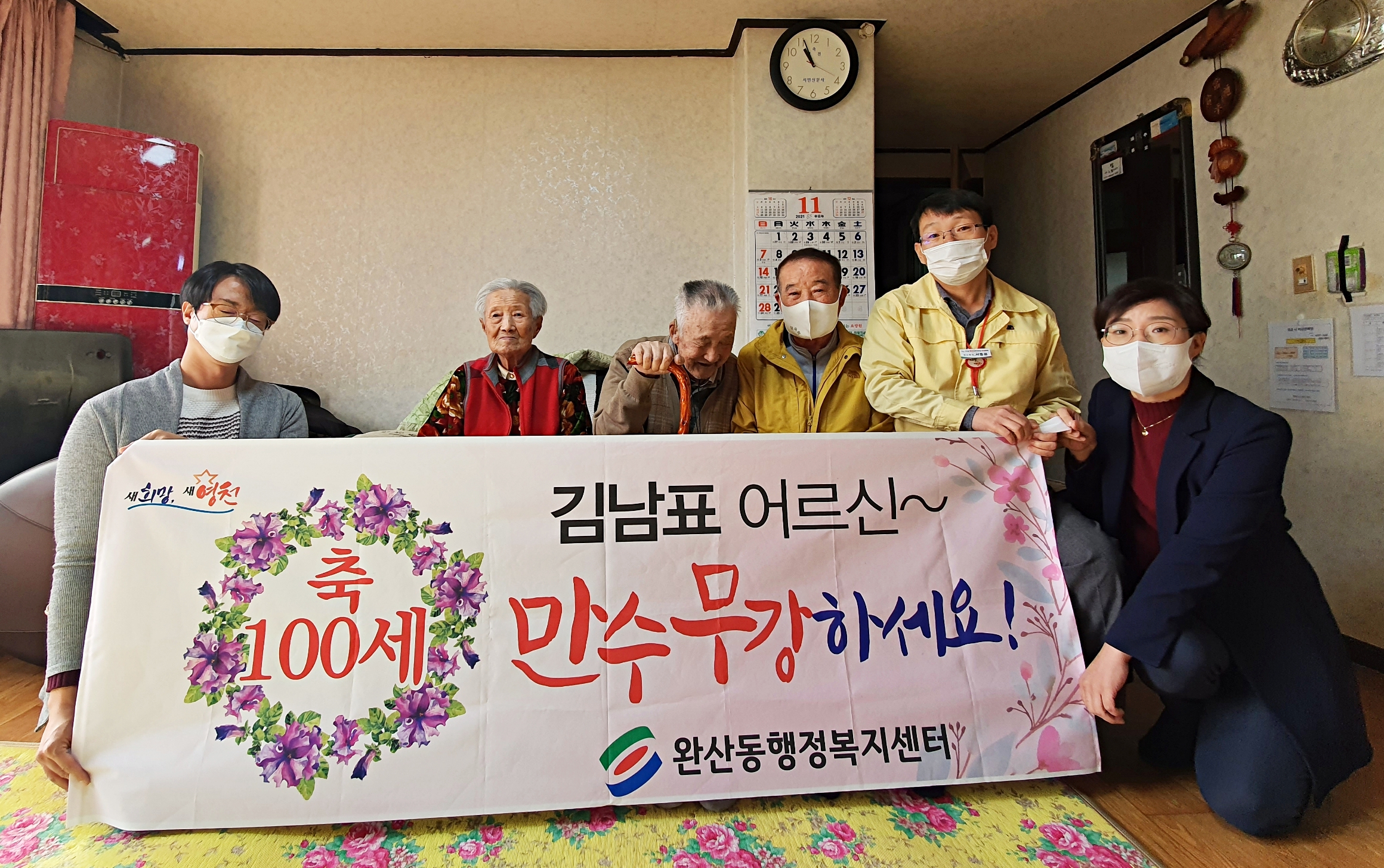 서동용 완산동장은 “젊은 시절 지역사회를 위해 봉사하시고 이렇게 100세를 맞이하신 것을 축하드리며 다가오는 겨울철 건강관리 더욱더 유의하시길 바란다”고 말했다.