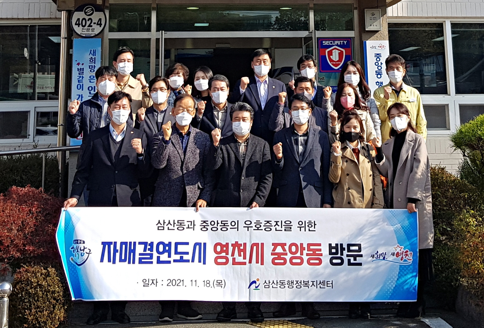 중앙동과 울산 삼산동은 2019년 4월 자매결연을 체결한 후 울산 고래축제, 삼산동 체육대회와 보현산 별빛축제, 영천와인투어에 서로 참가하는 등 상호 방문을 통하여 활발한 교류활동을 벌였다.
