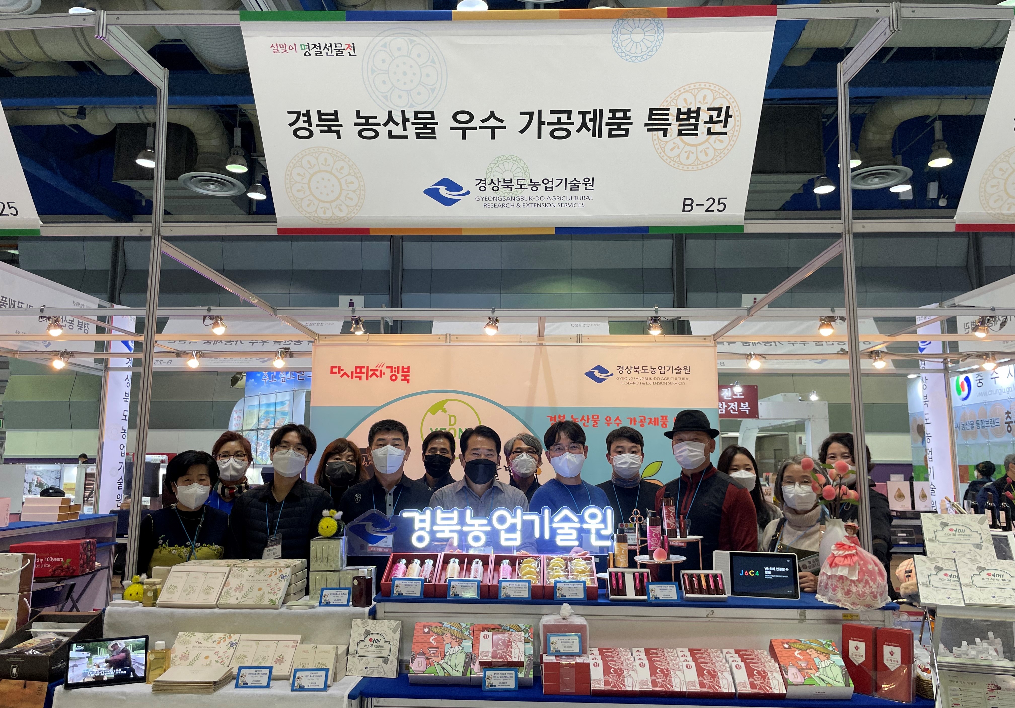 경상북도농업기술원은 지난 15일부터 18일까지 서울 코엑스에서 열린‘설맞이 명절선물전’에 지역 농산물 가공경영체 12개 업체가 참가해 지역의 우수한 가공제품을 바이어 및 서울소비자들에게 선보였다고 밝혔다.