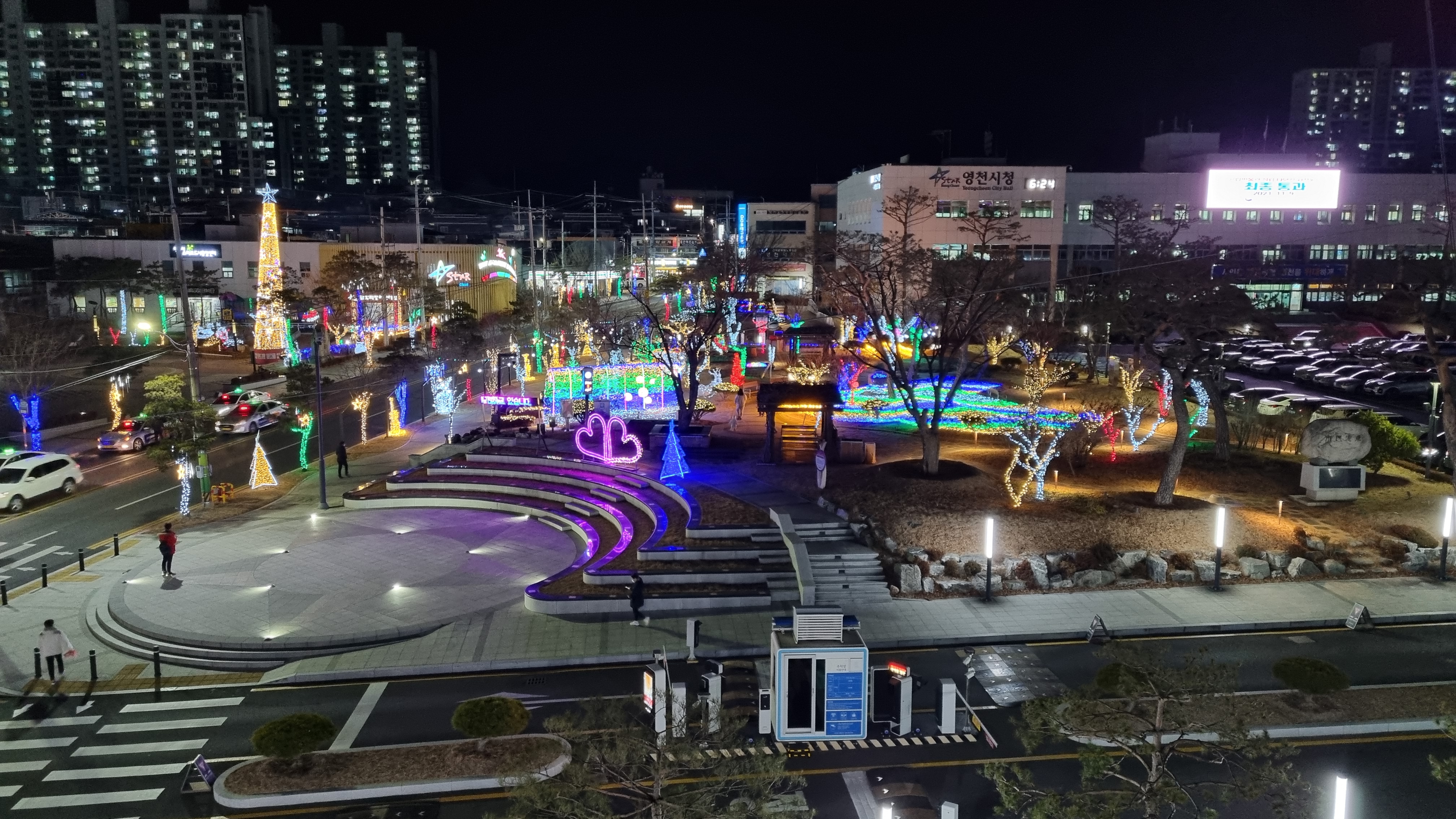 영천시청앞 년말년시 볼거리로 자리한 트리가 올해는 더 화려하게 보인다.