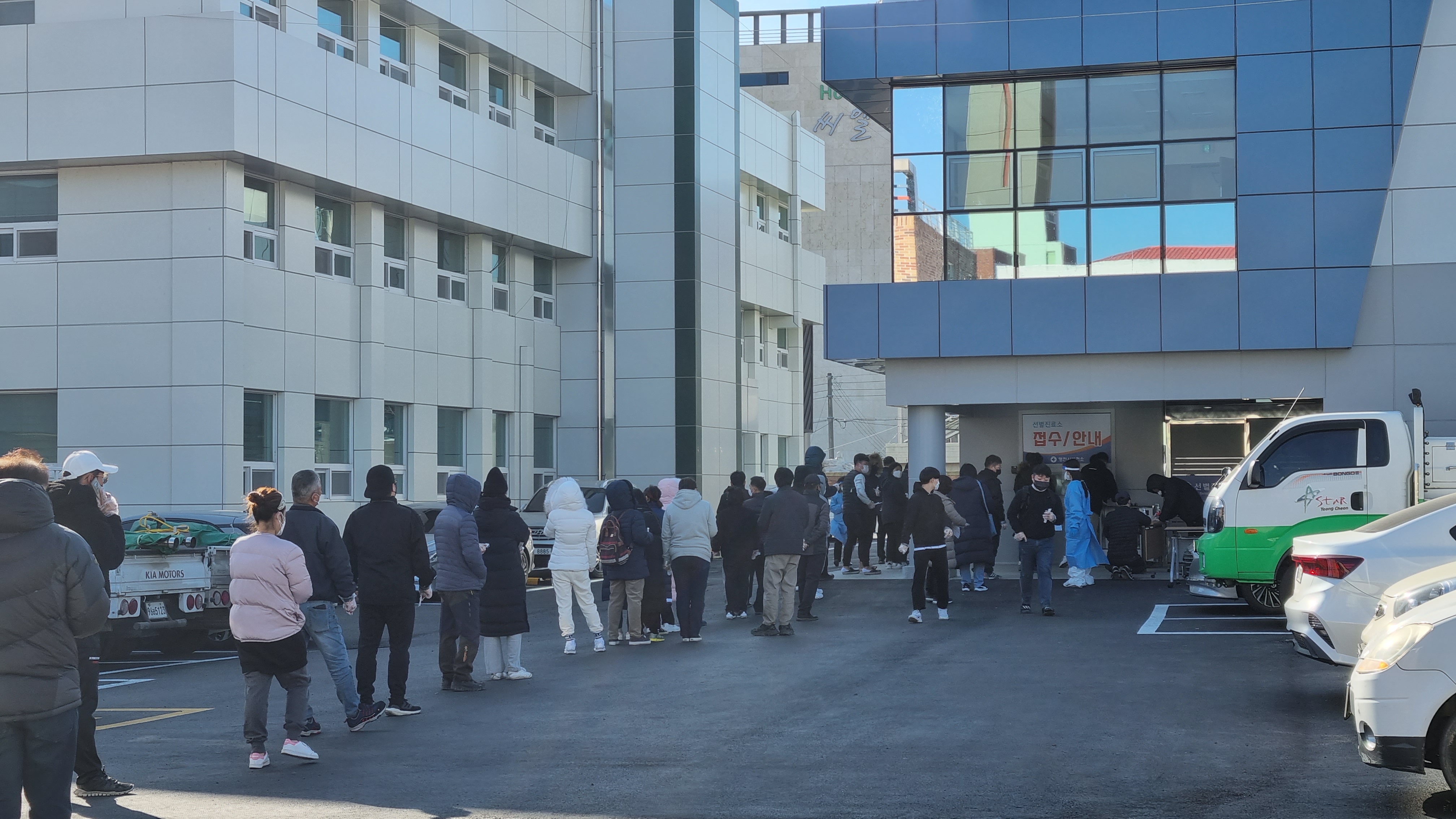 설연휴 시작부터 신축 선별진료소 북새통