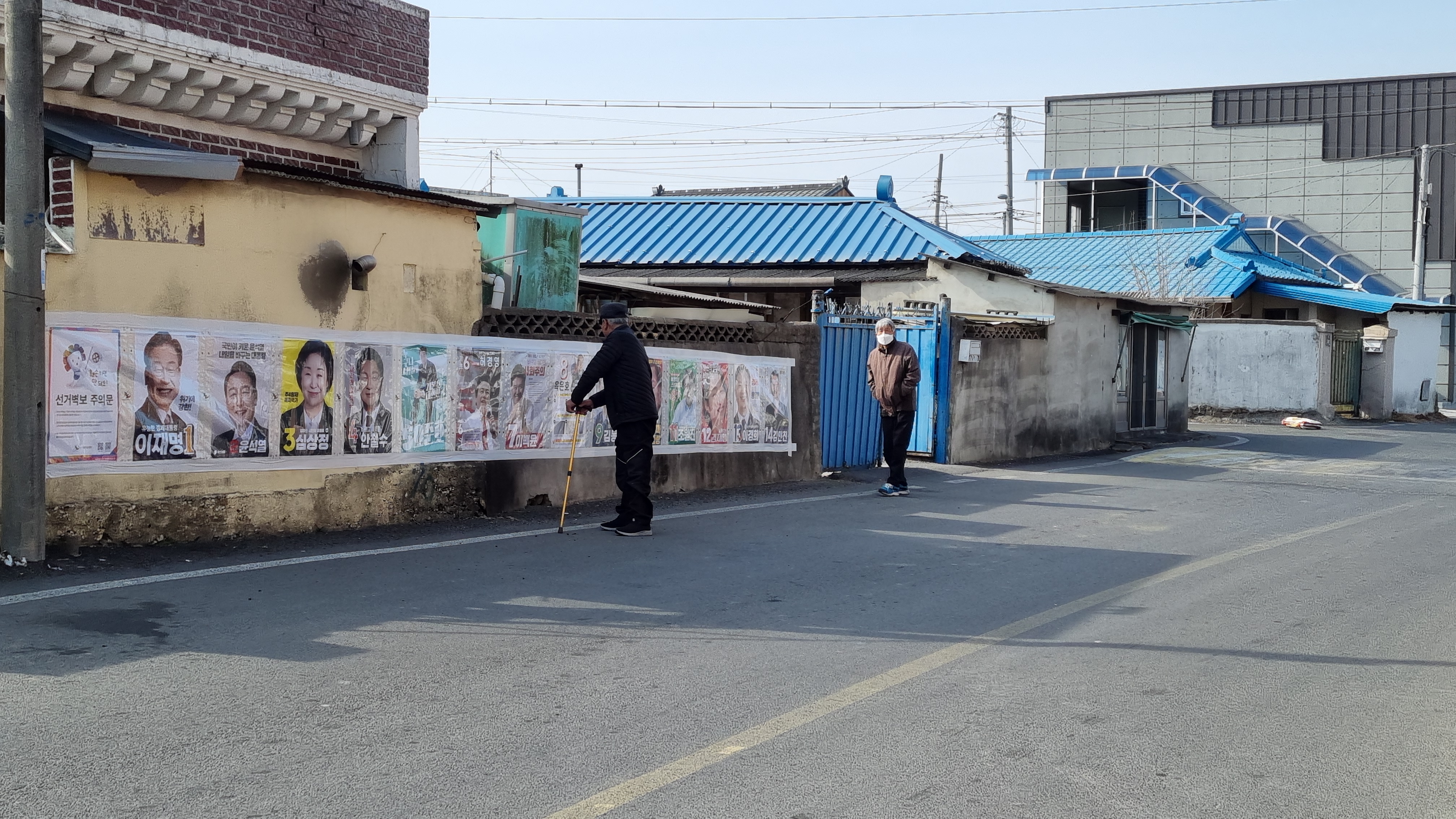 대통령 선거 운동이 15일부터 시작됐다. 지역에서도 거리유세를 비롯해 각종 선거운동이 활발하다. 또 동네 벽과 도로변 공간에는 대통령 선거 후보자들의 선전벽보가 붙었다. 선전벽보를 관찰하는 어르신들이 후보 경력을 살피고 있다.