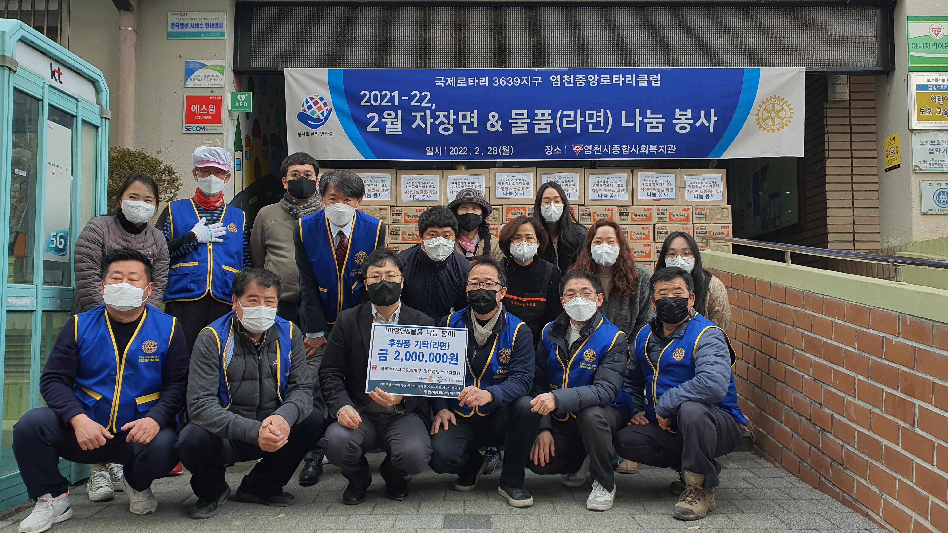 국제로타리 3630지구 영천중앙로타리클럽(회장 서원기)은 지난달 28일 영천시종합사회복지회관에서 자장면 및 물품(라면) 나눔 봉사를 실시하였다.