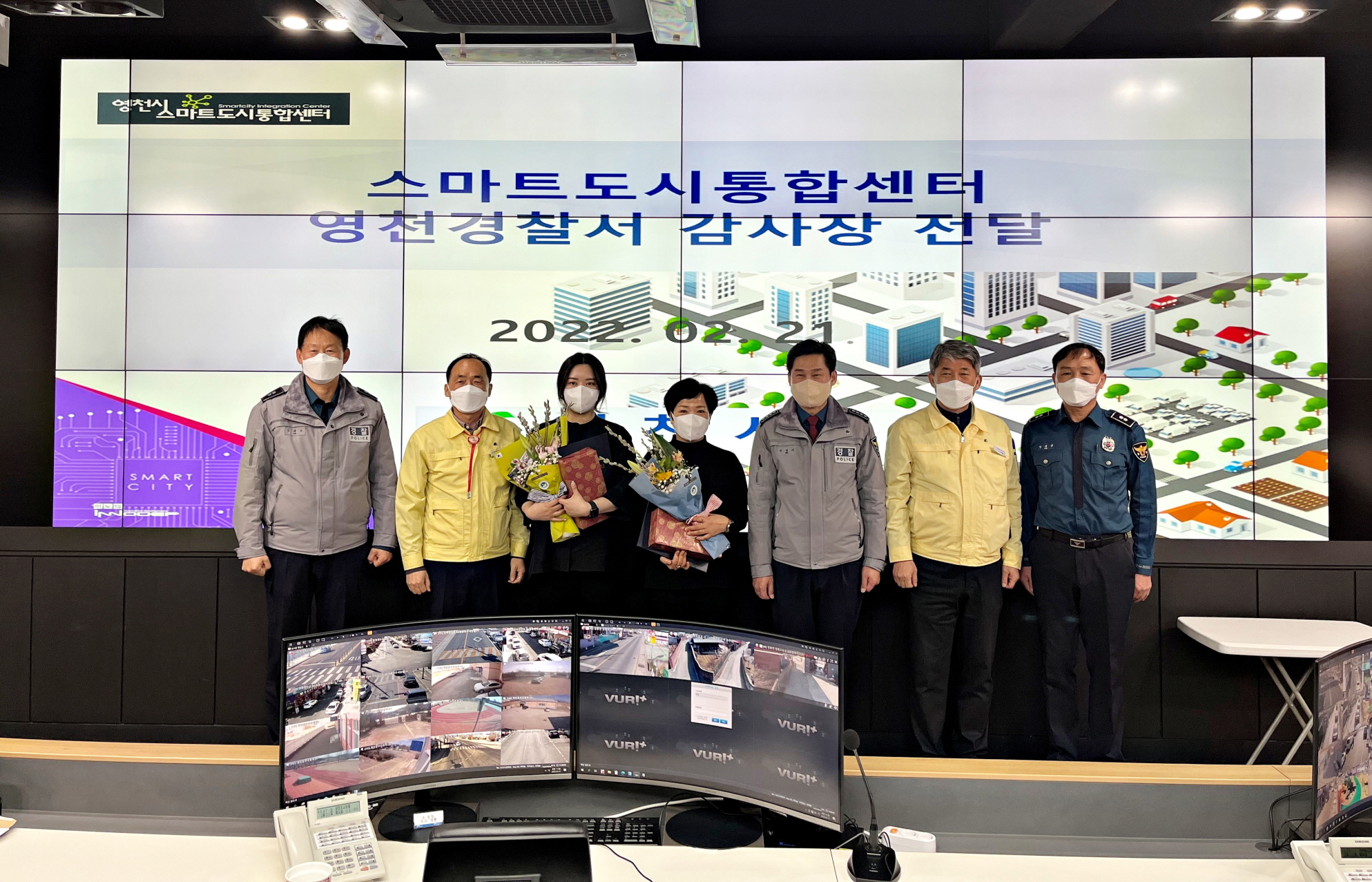 영천시 스마트도시통합센터는 2월 21일 음주운전자 검거 및 차량털이 절도범 용의자 검거에 공을 세운 관제요원 2명에게 영천경찰서장 감사장 수여식을 가졌다.