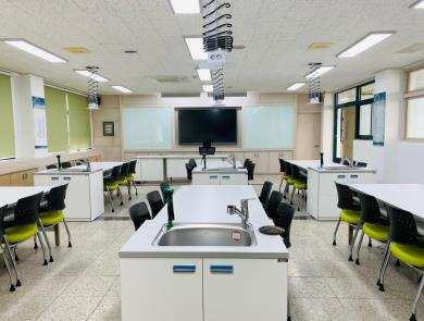 ‘경북형 지능형 과학실’은 기존의 전통적 과학실험 및 탐구활동과 더불어 ICBM(IoT, Cloud computing, BIG Data, Mobile)을 이용한 데이터 기반 탐구활동과 AR, VR, MR 등 첨단과학기술을 활용한 탐구활동이 가능한 미래형 과학실로 학생참여형 과학수업을 위한 공간 구성과 수업·공유·토의를 위해 다양한 첨단기자재를 갖추었다.