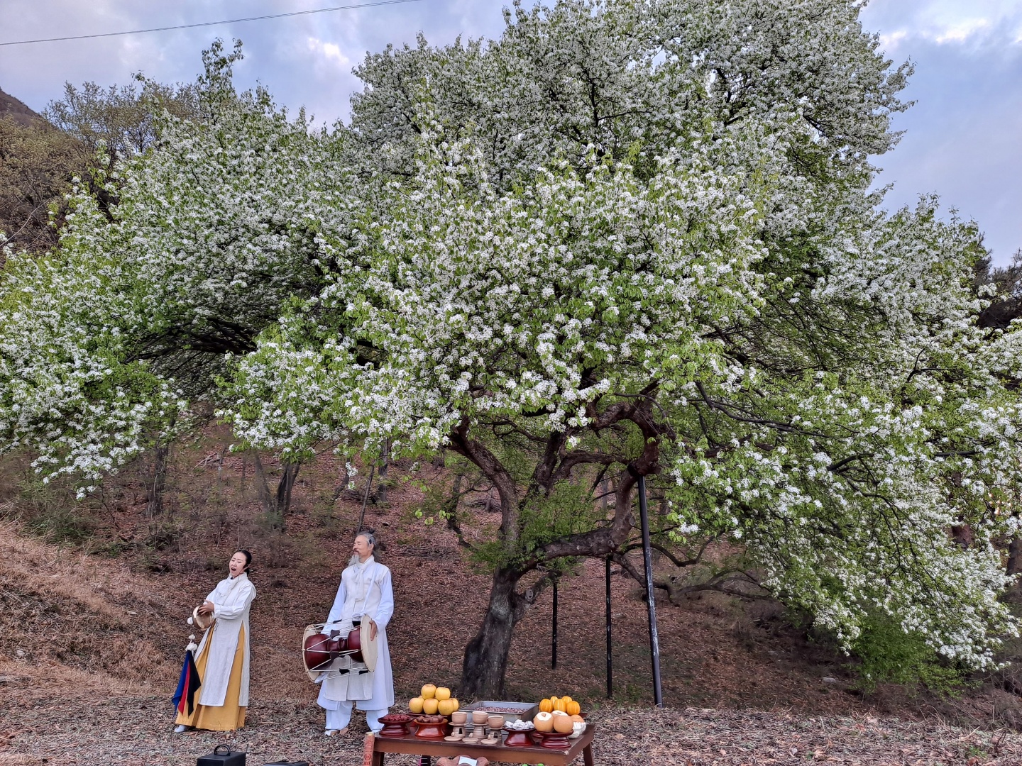 때마침 산돌배나무의 흰 꽃이 우람하게 자태를 드러내 참석자들 모두 감탄을 자아내며 자연의 아름다움을 만끽했다.
