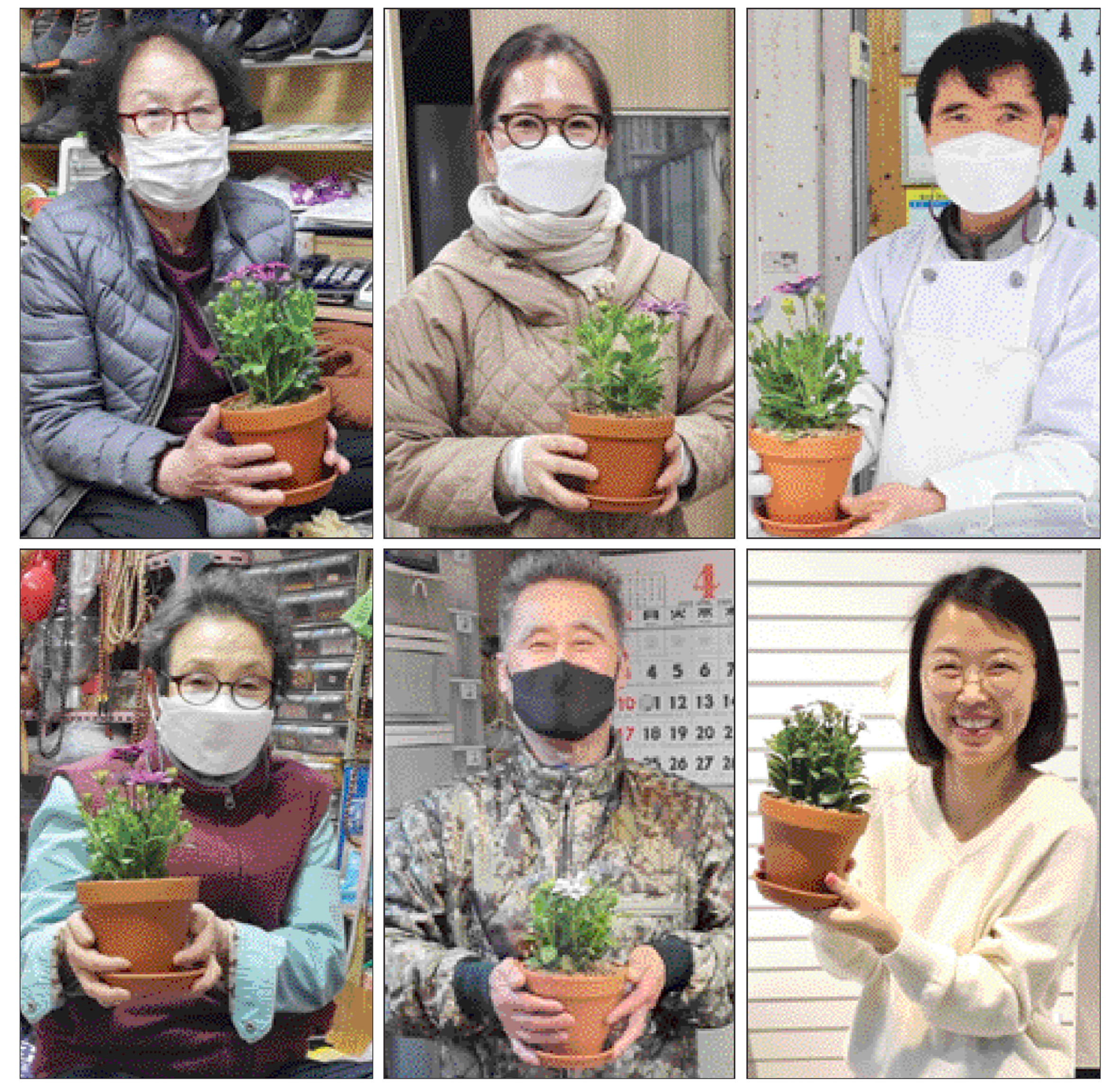 꽃을 전달받은 상인들은 “고객들만 접하다가 꽃을 접하니 뭔가 어색하다. 가게에 꽃이 어울리는지는 모르겠다.”면서 “예쁜 꽃을 잘 키워서 한 달 후 전시회에도 나가고 입상도 해야겠다.”고 했다.